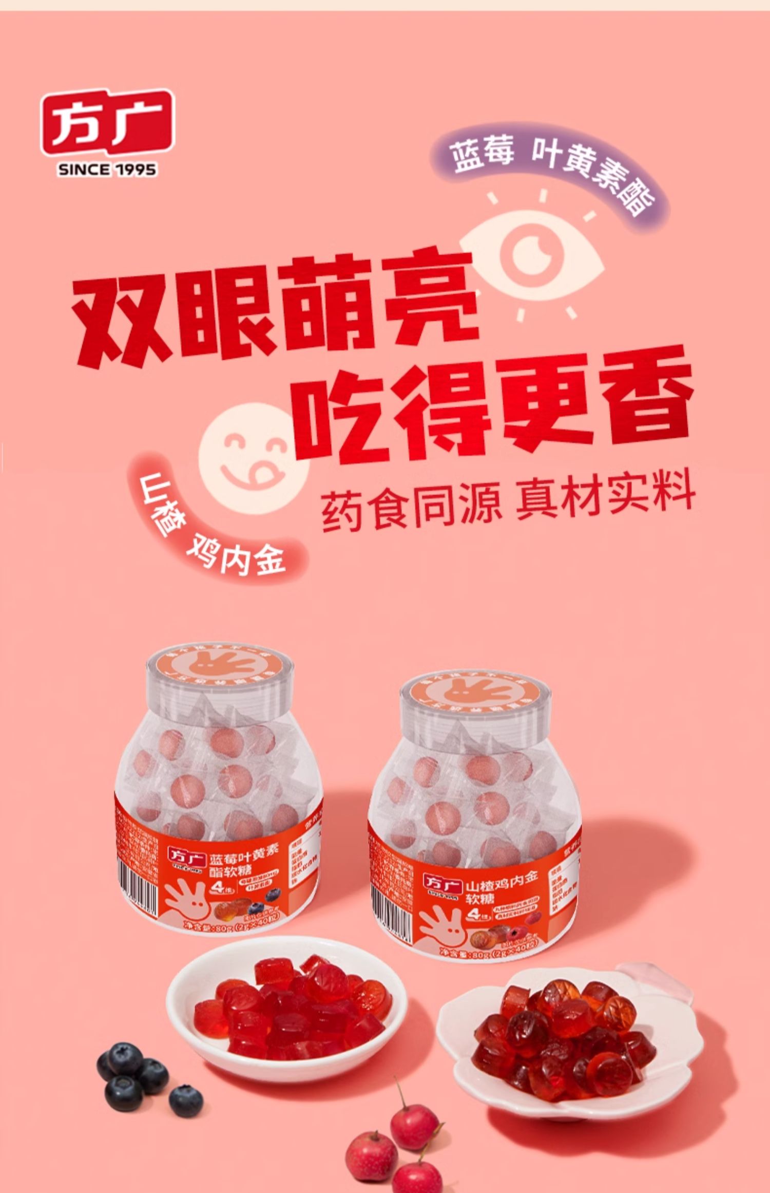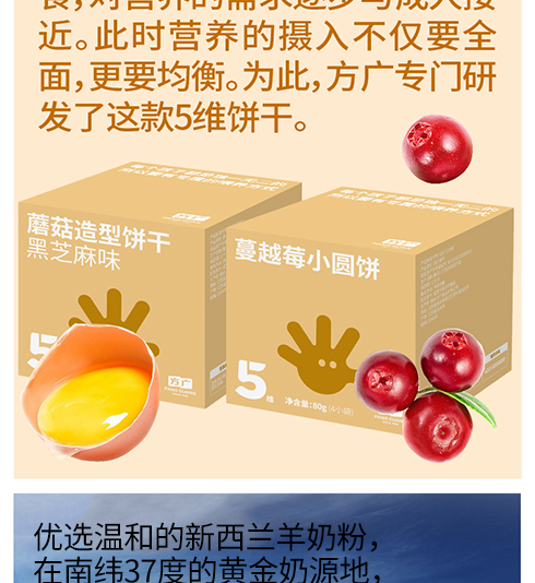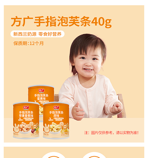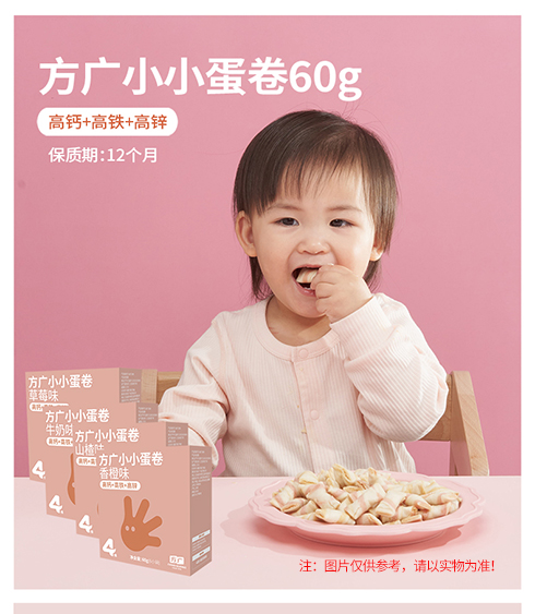 方广饼干薄脆饼干宝宝磨牙手指饼干儿童零食盒装80g/蔓越莓小圆饼80g/小小蛋卷(香橙味/牛奶味/草莓味)60g/手指泡芙条/蓝莓叶黄素酯软糖