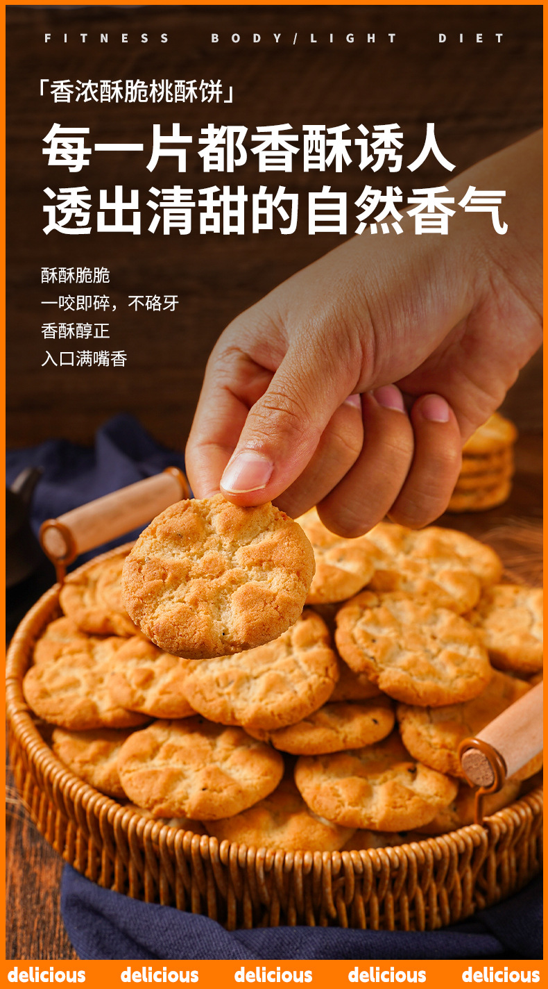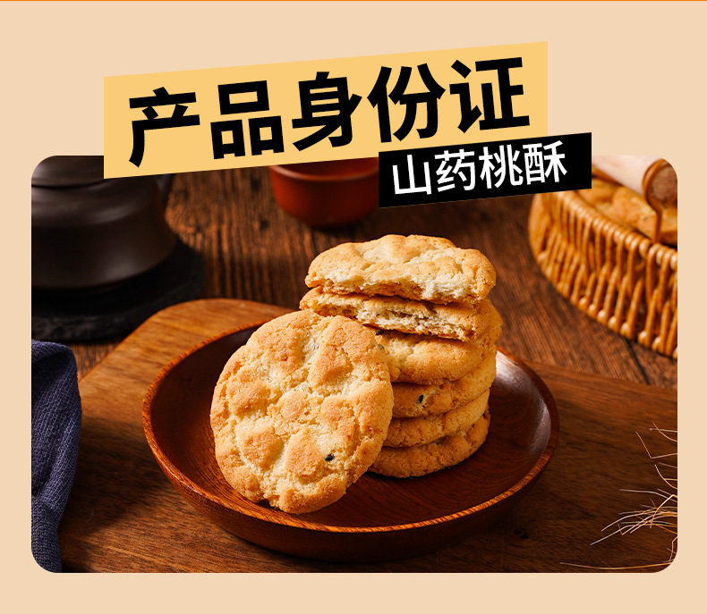 自营(泰利嘉)- 木糖醇山药桃酥正宗铁棍健康零食无蔗糖整箱独立包装桃酥饼约750g