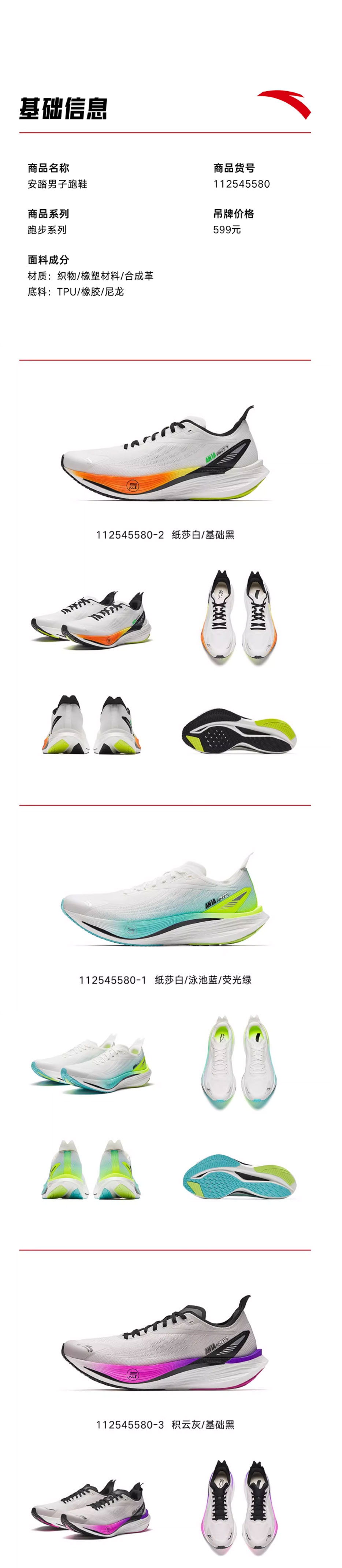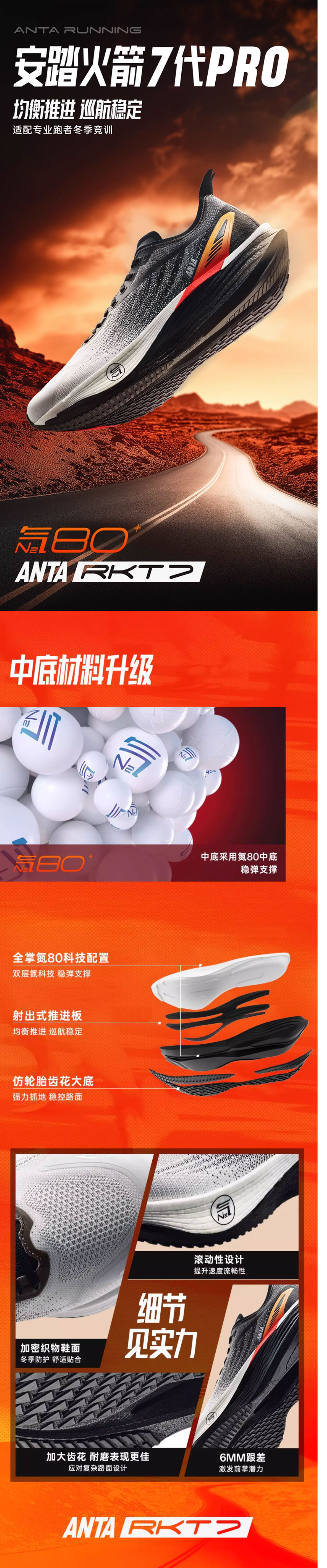 安踏火箭7pro轻质透气跑步鞋男夏季新款缓震运动跑鞋112545580-1