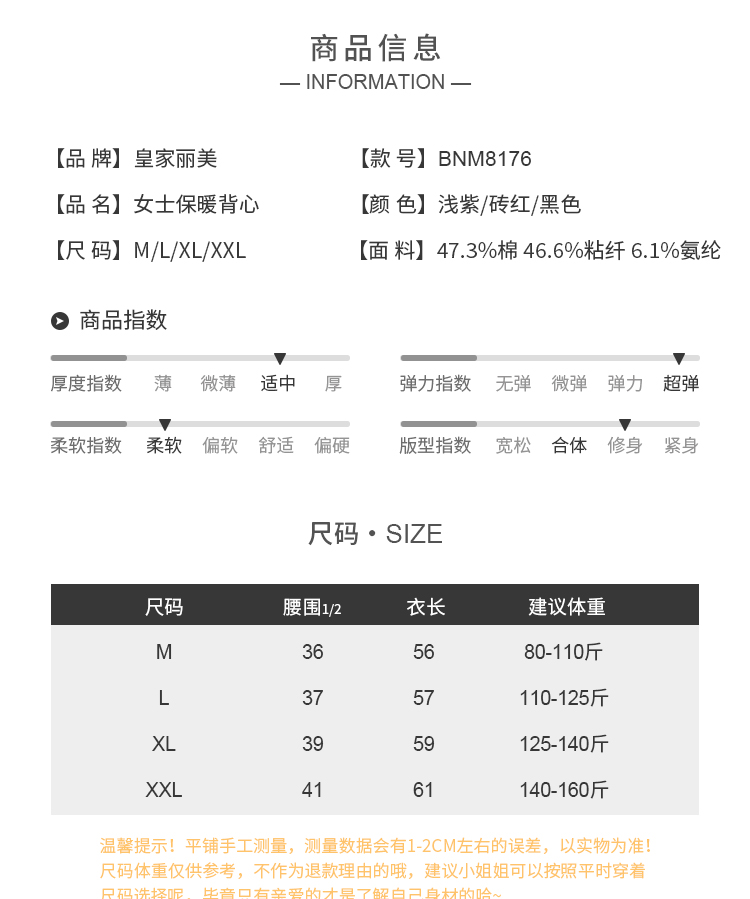 皇家丽美保暖背心女士秋冬无痕内穿坎肩马甲德绒打底衫BNM8176
