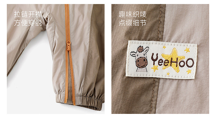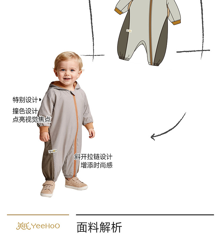 英氏婴儿防晒衣服连帽连体衣宝宝长袖春秋春季爬服YRHFJ1S047A
