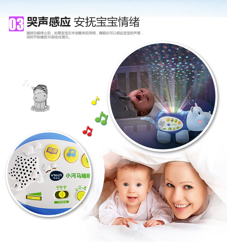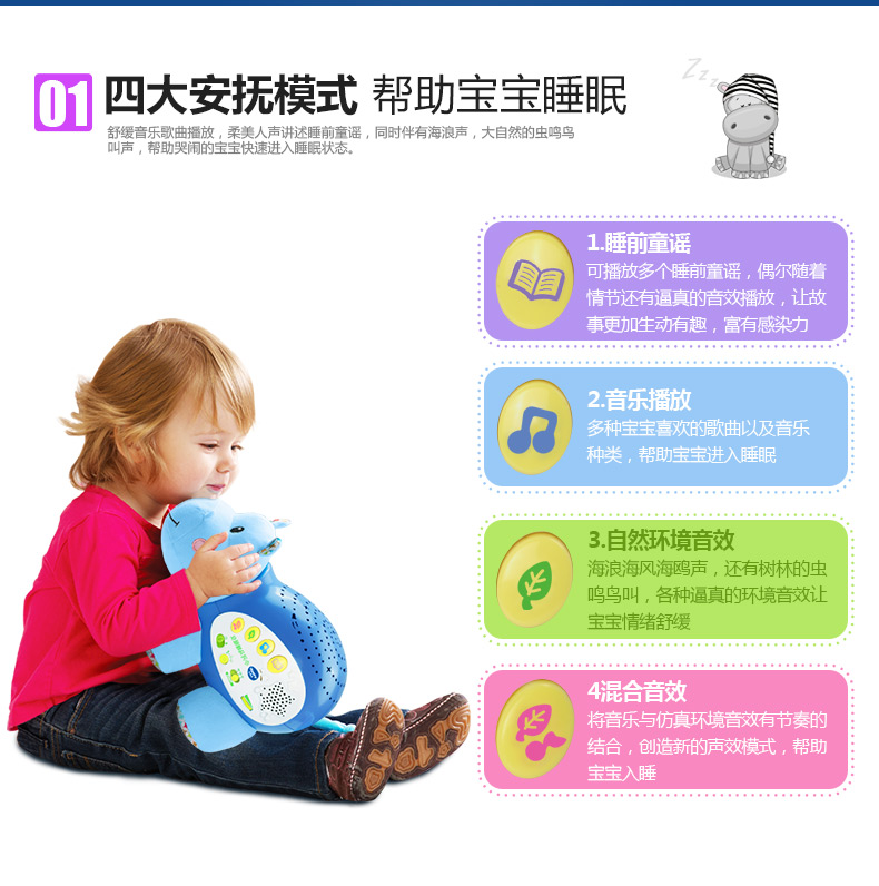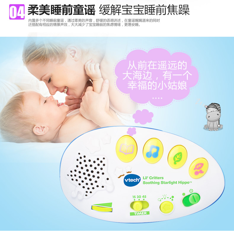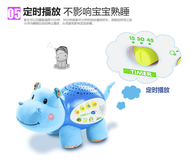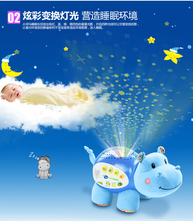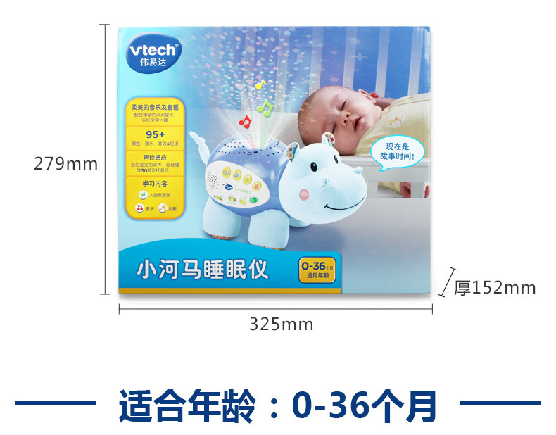 0-3岁 | VTech伟易达 小河马睡眠仪 宝宝安抚睡觉神奇海马玩偶哄睡(支持7天无理由退货,但需要包装盒和配件