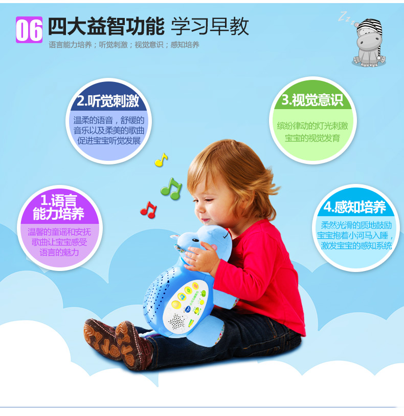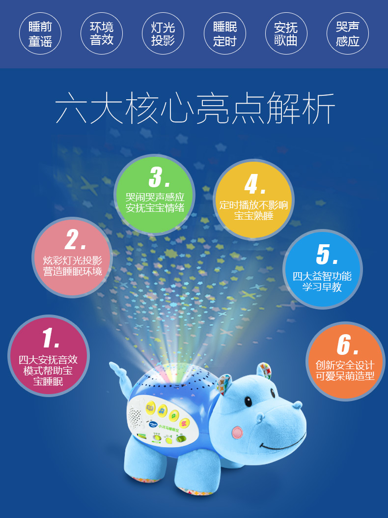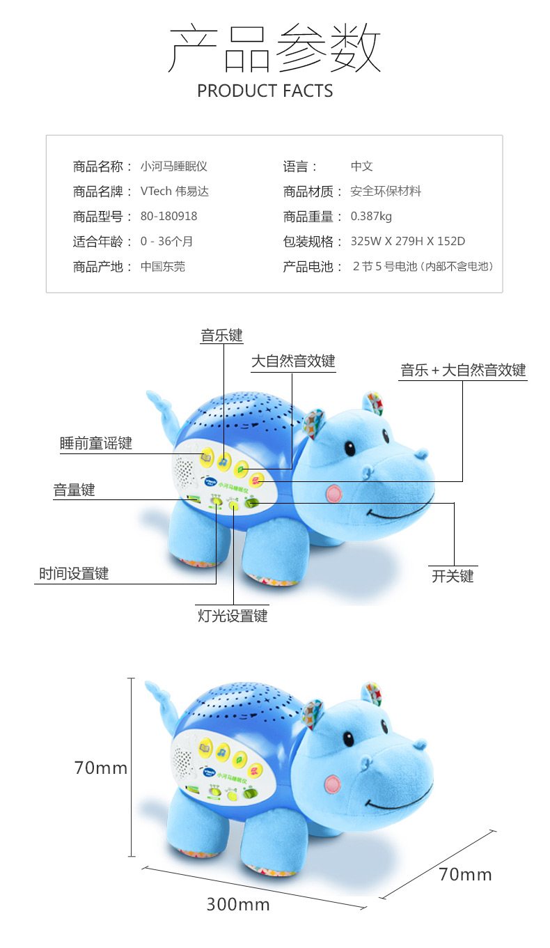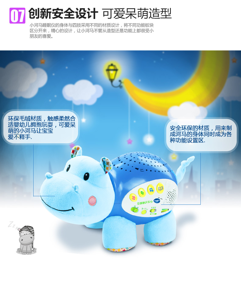 0-3岁 | VTech伟易达 小河马睡眠仪 宝宝安抚睡觉神奇海马玩偶哄睡(支持7天无理由退货,但需要包装盒和配件