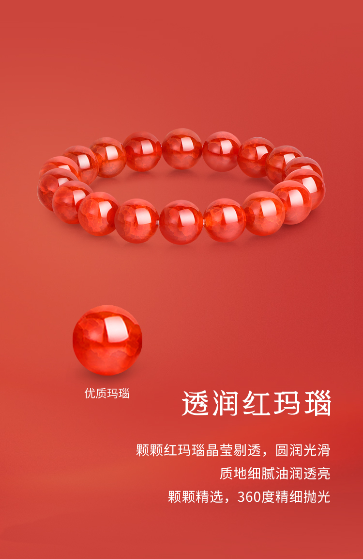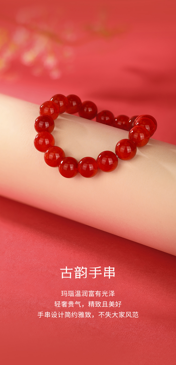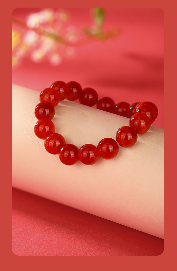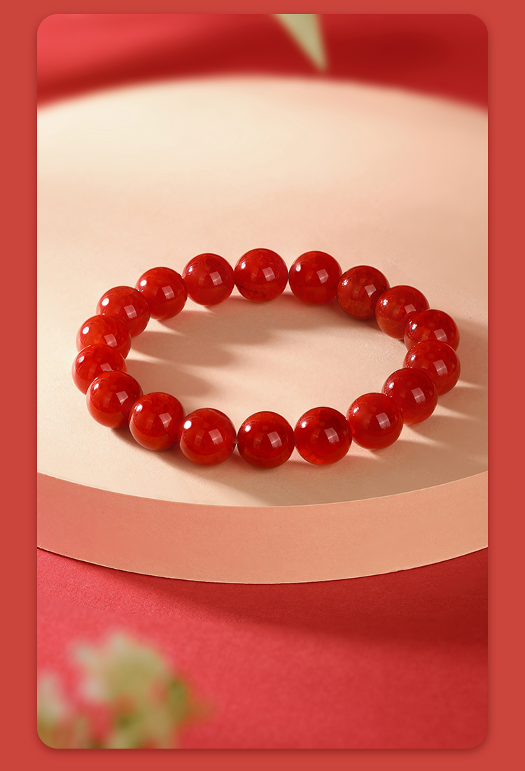 周六福红霜叶玛瑙手串ZLFJ122695(福利款绒布袋包装无证书)★