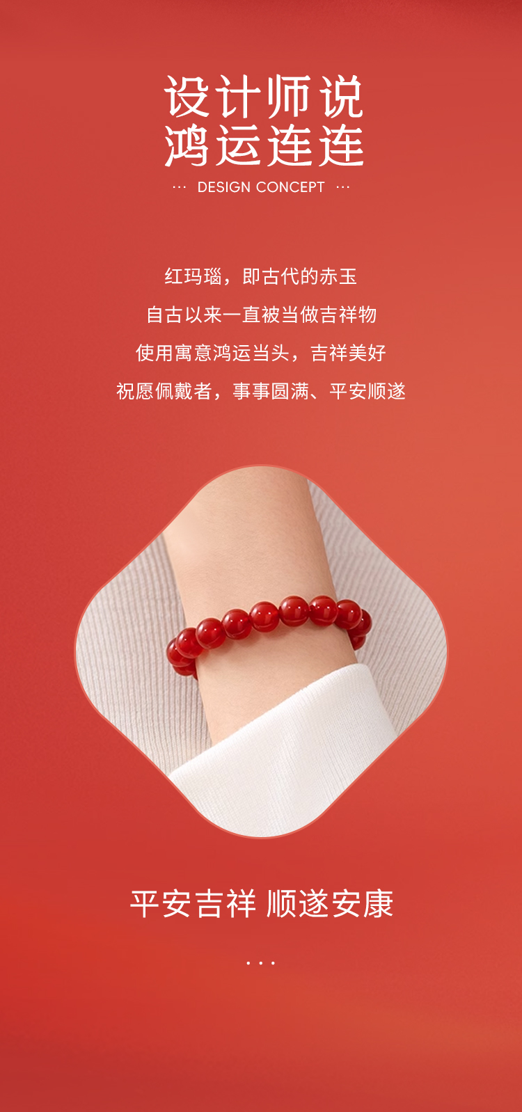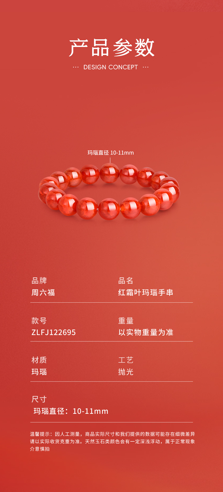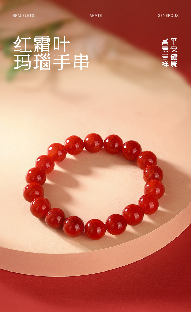 周六福红霜叶玛瑙手串ZLFJ122695(福利款绒布袋包装无证书)★