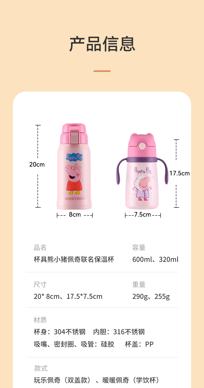 杯具熊复古儿童保温杯小猪佩奇联316不锈钢保温杯600ml-10
