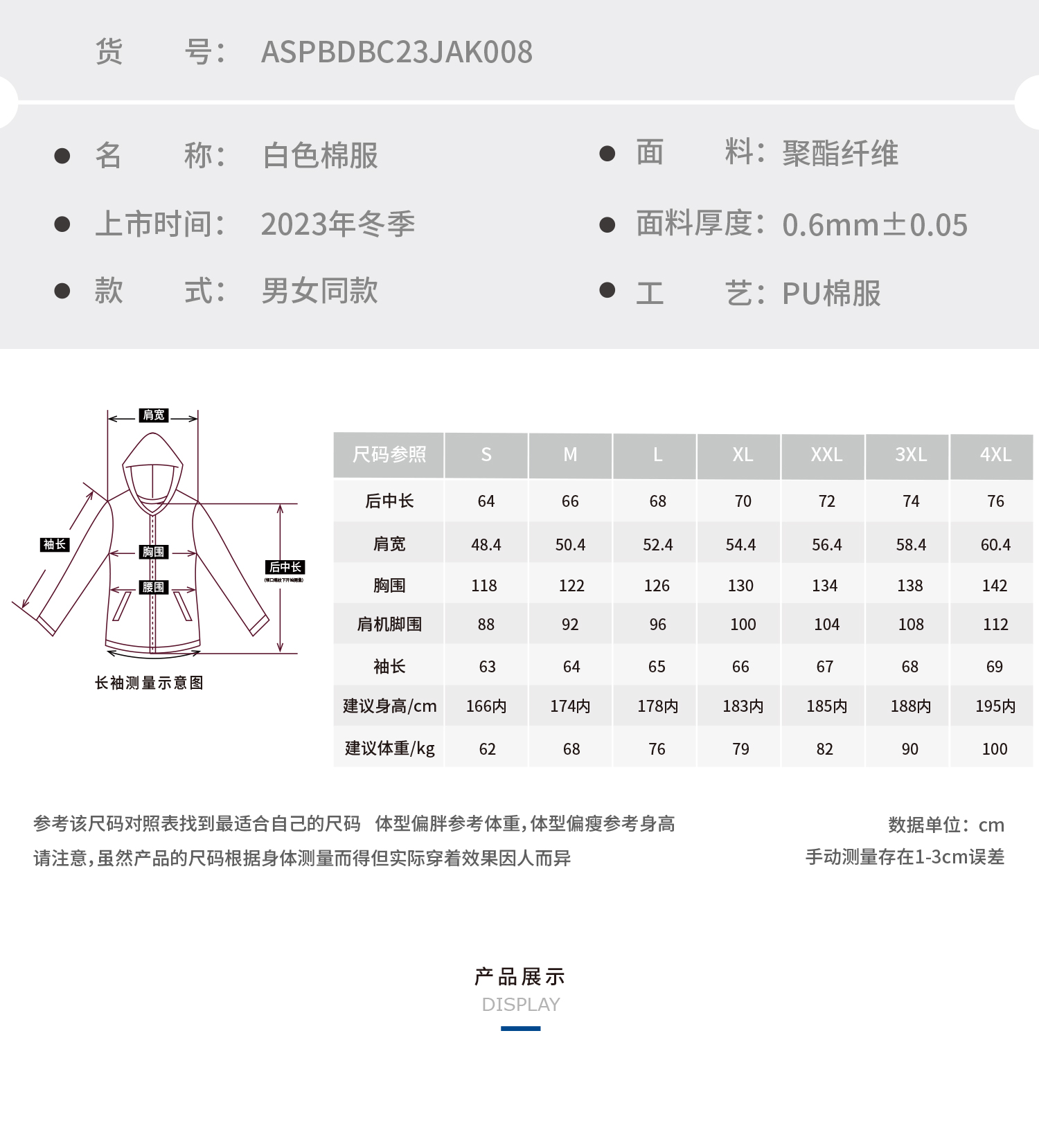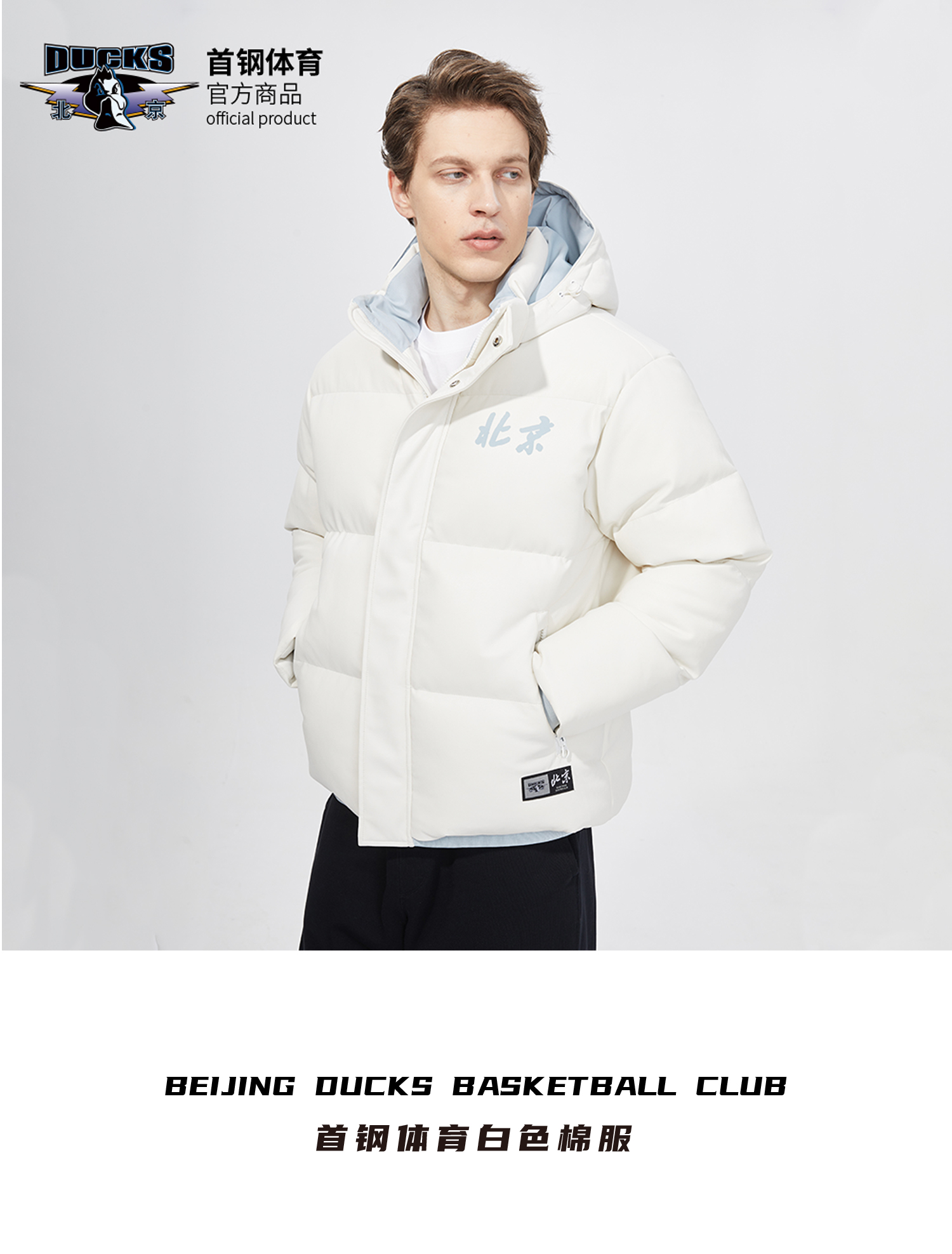 北京首钢篮球俱乐部官方商品 | 冬季新品白色PU短款棉服外套耐脏