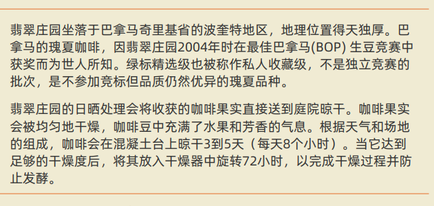 【建发45周年庆典 & INFO 饮否】巴拿马翡翠庄园瑰夏绿标精选级日晒处理 咖啡豆