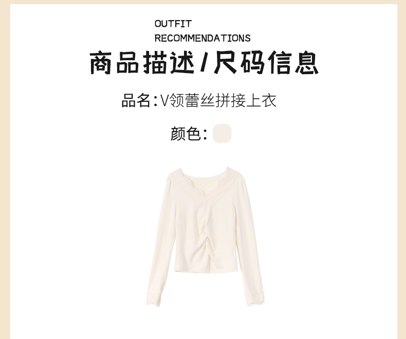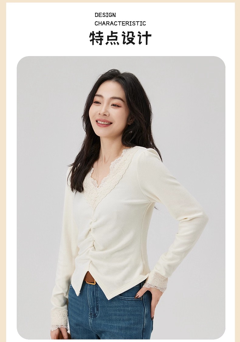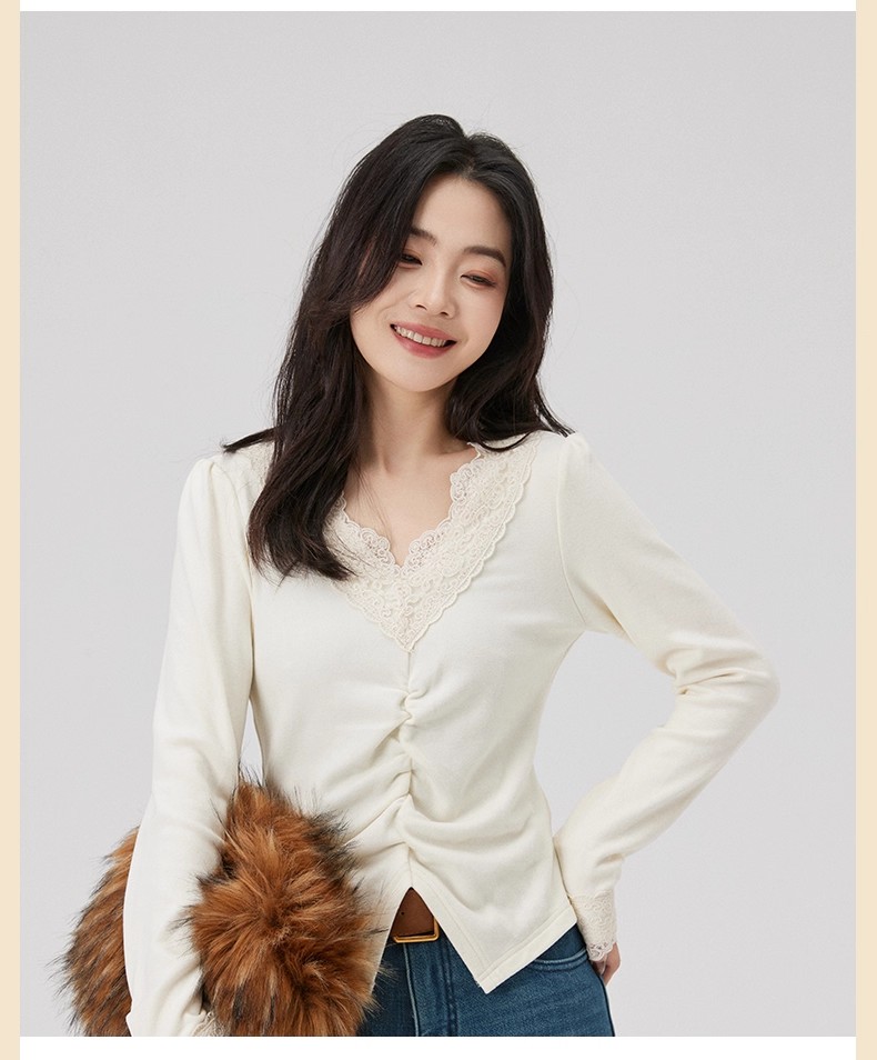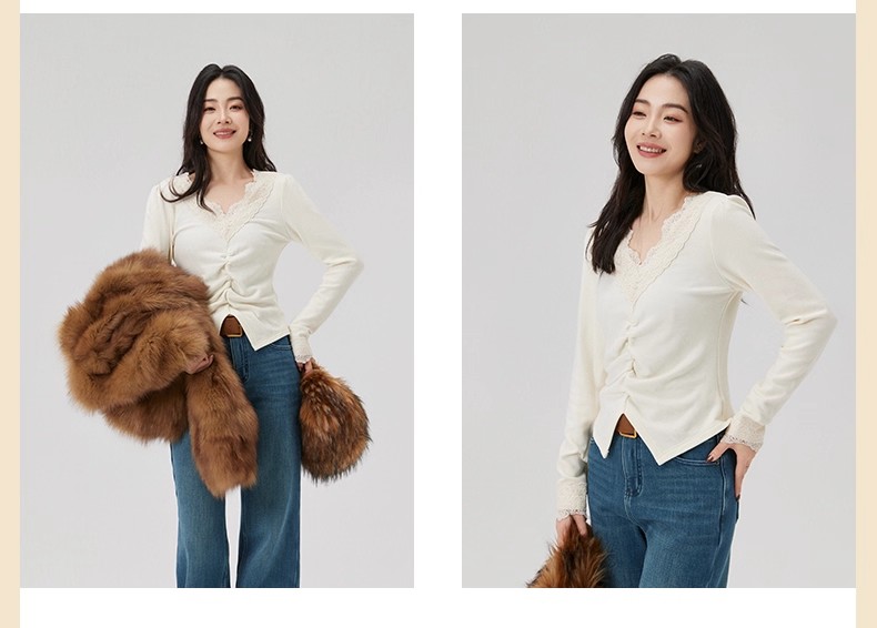 【门店同款】ENJOY冬季“暖冬软糖”V领蕾丝拼接上衣 168343138