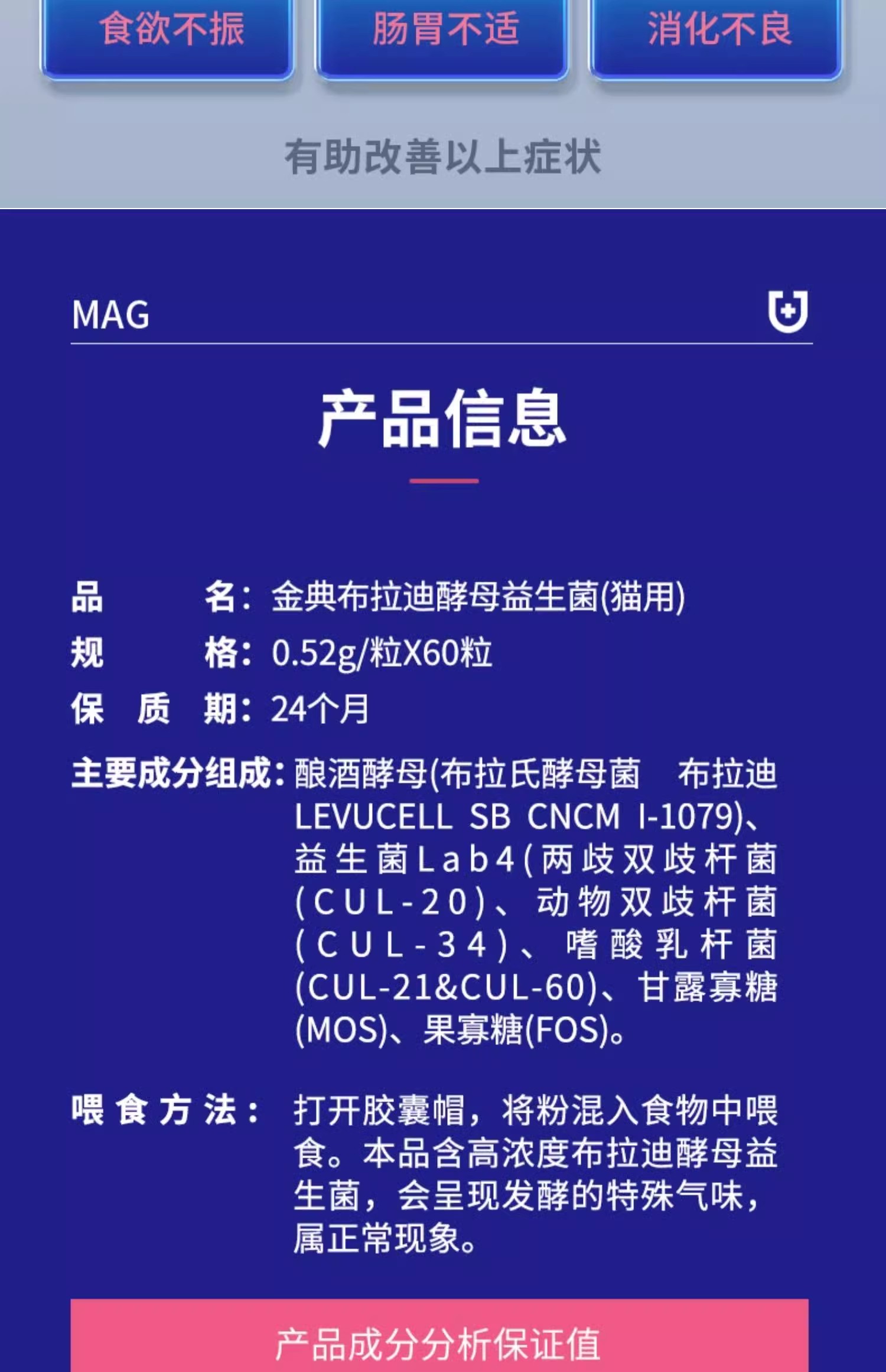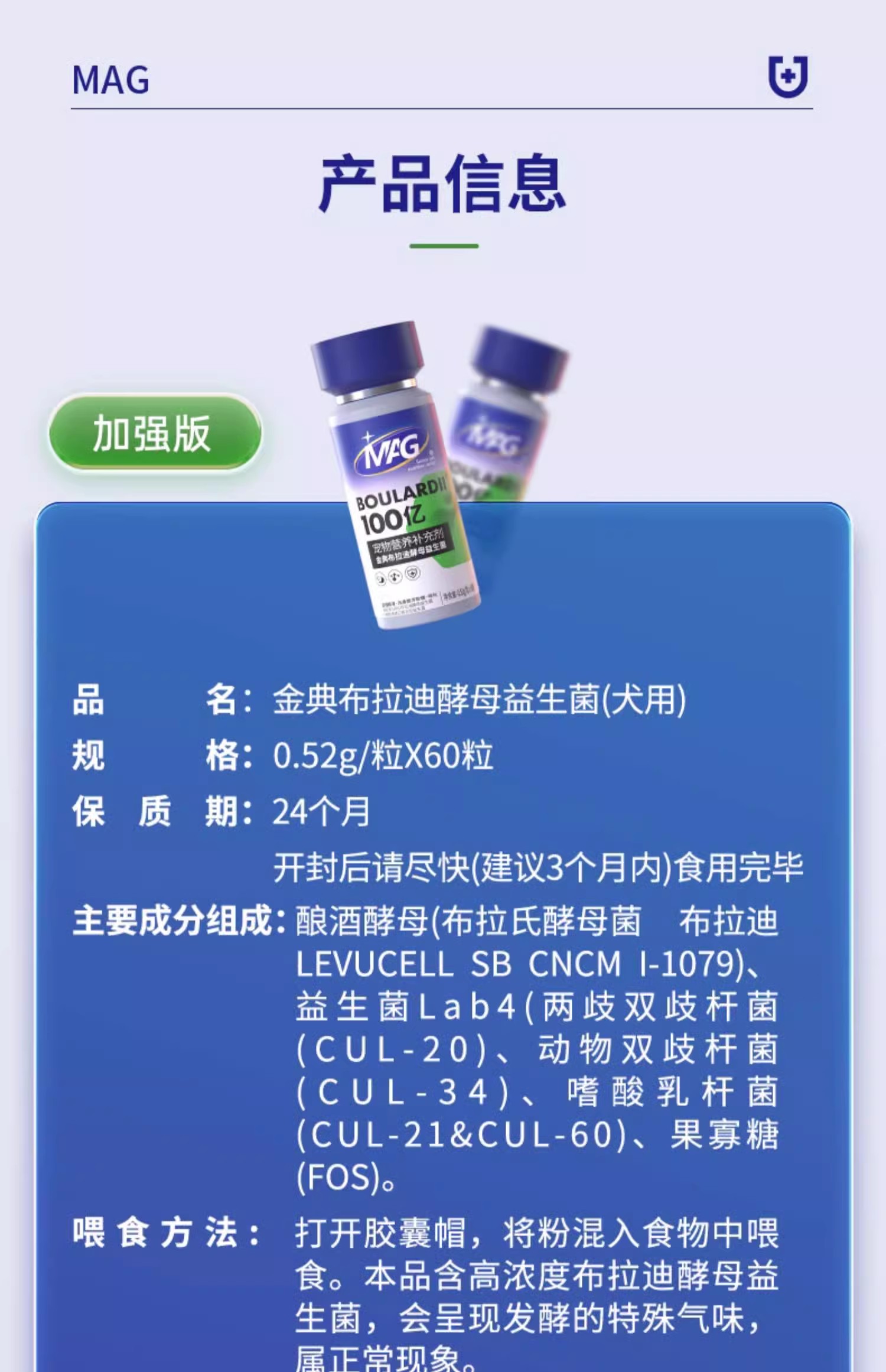 MAG布拉迪益生菌猫咪/狗狗专用 宠物猫用益生菌调理肠胃 改善软便腹泻 法国原装进口