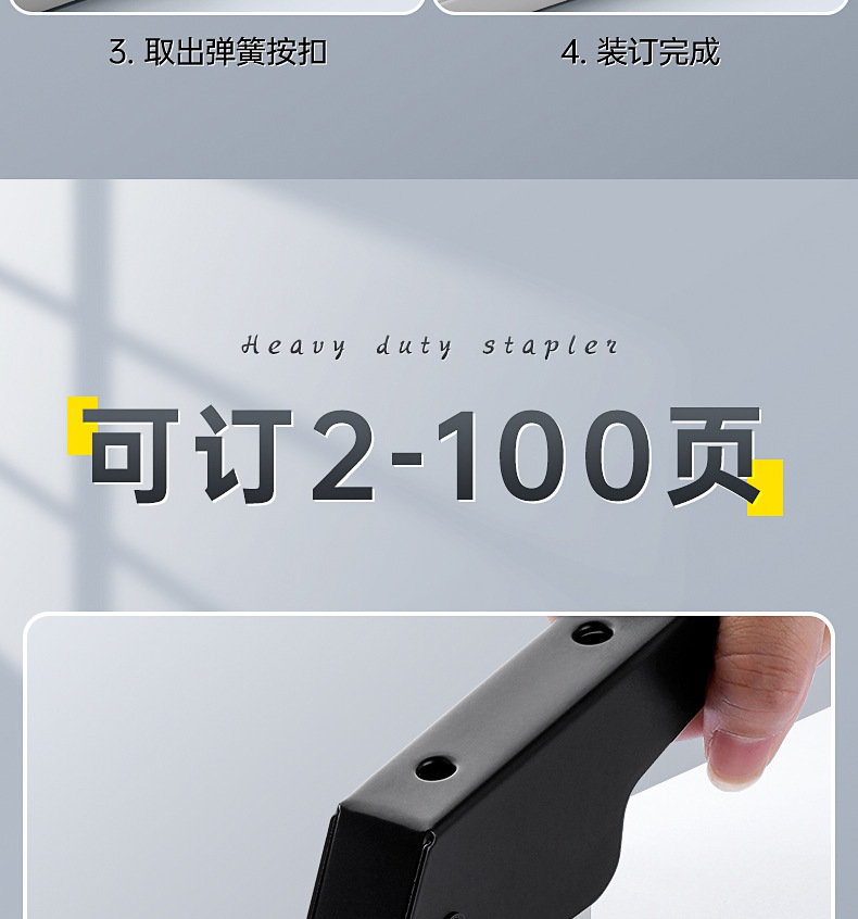 省力订书机大号可订100页大型订书器学生用装订厚书本子长臂重型