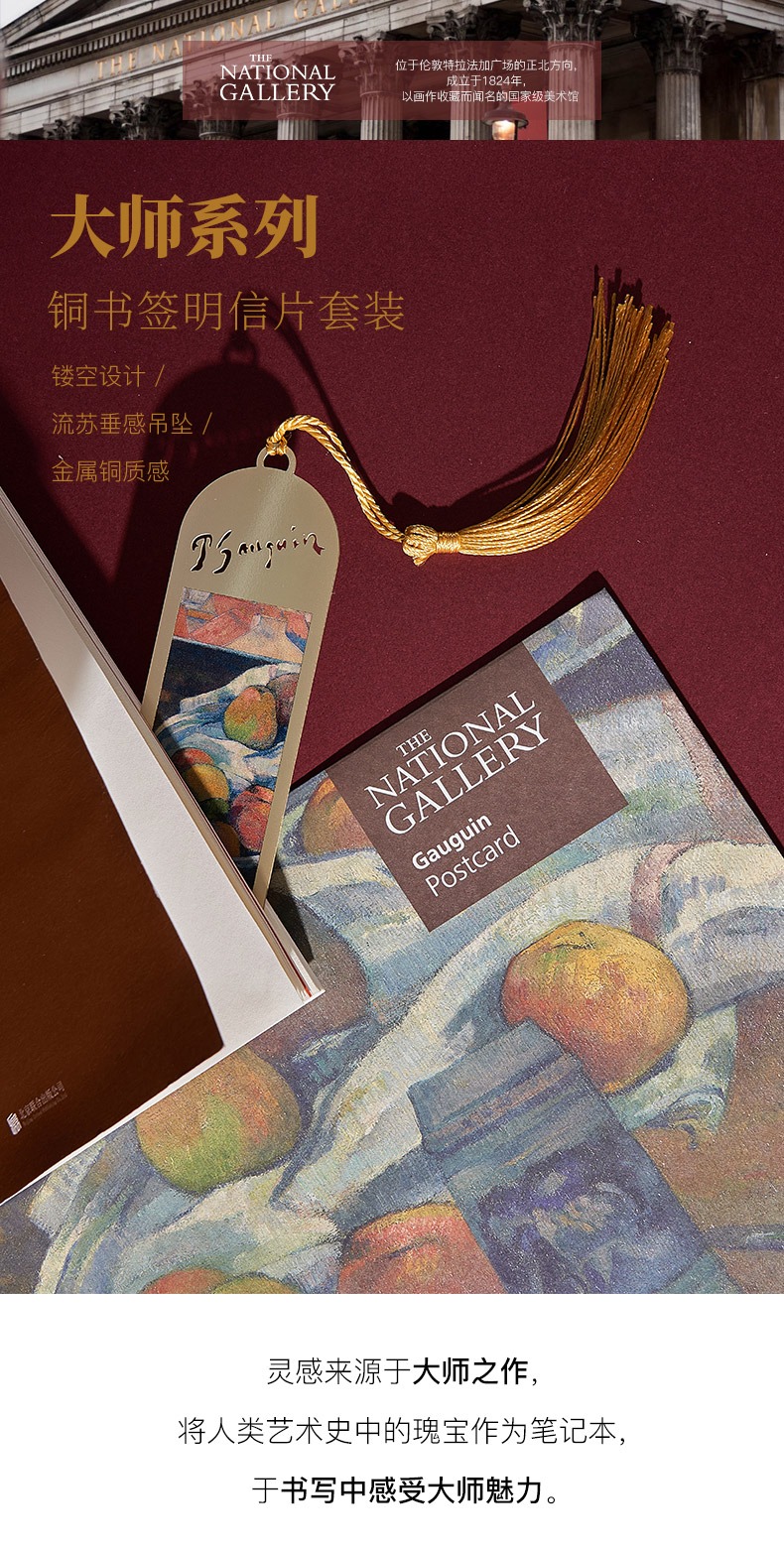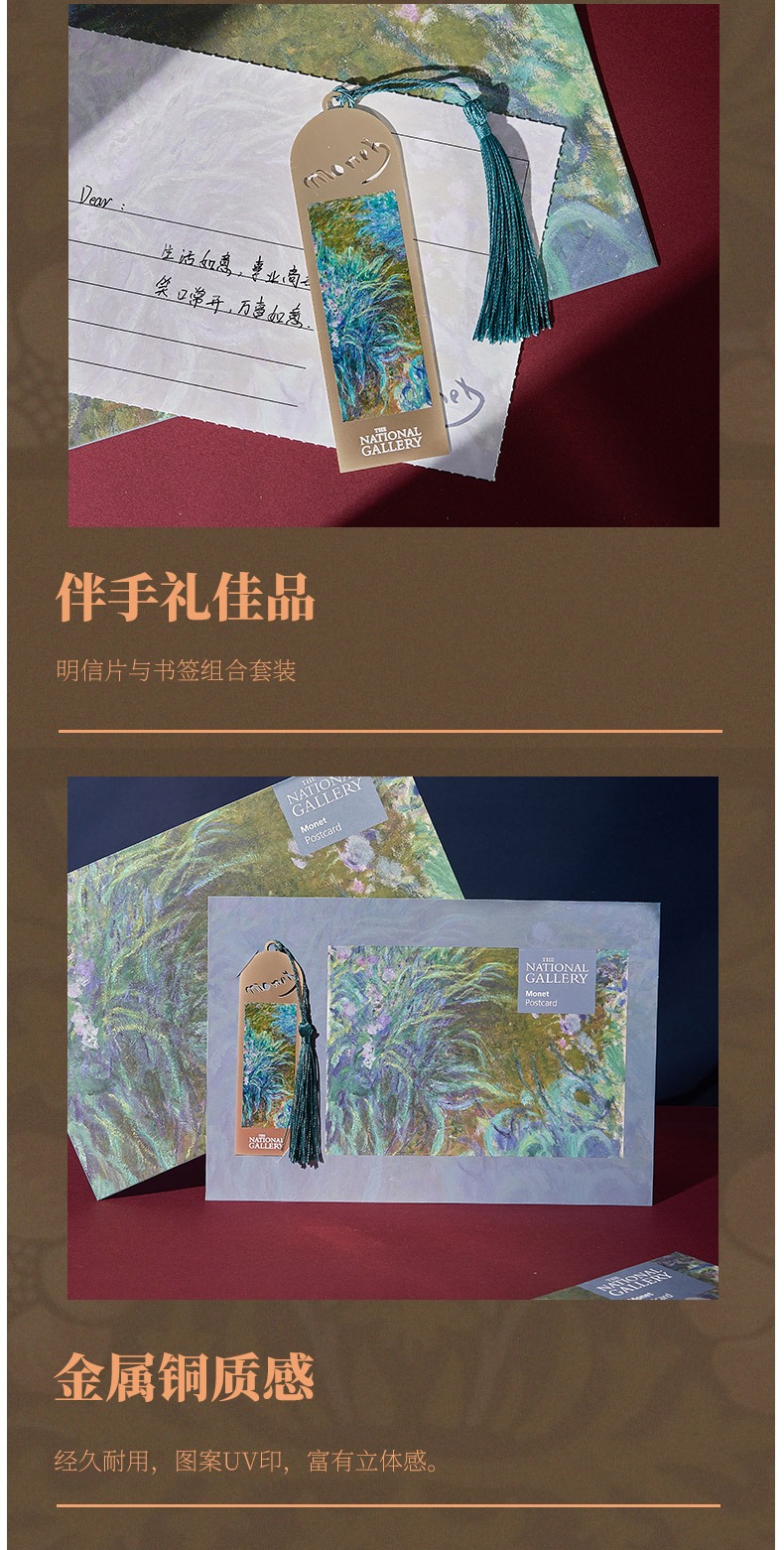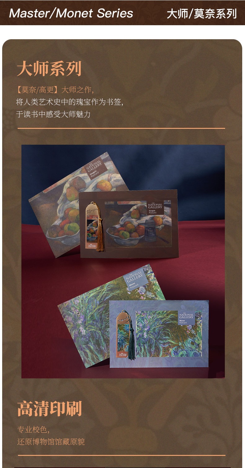 The National Gallery大师系列 莫奈高更 鸢尾花窗前果盘和酒杯 铜复古书签明信片套装