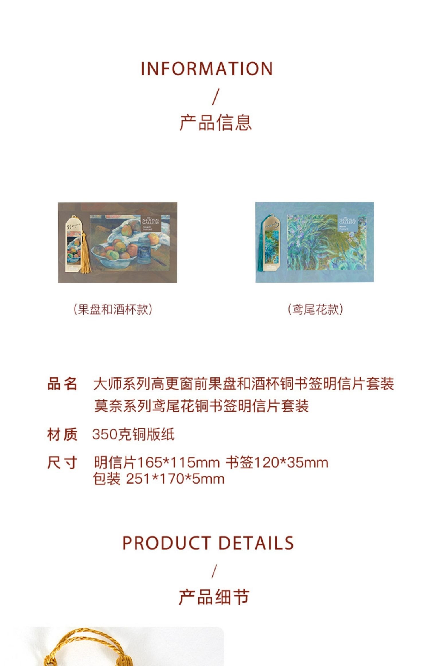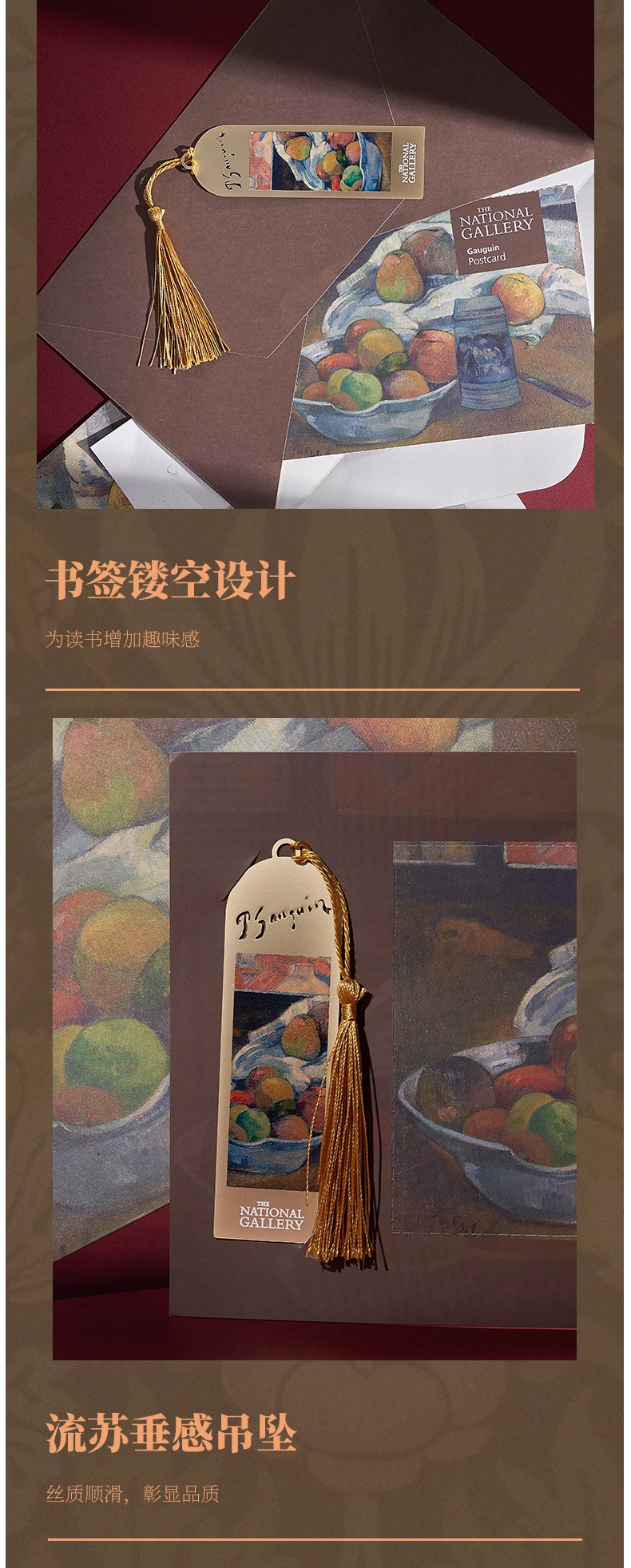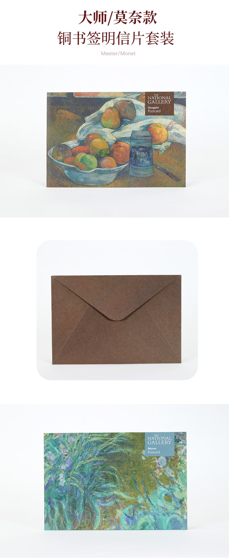 The National Gallery大师系列 莫奈高更 鸢尾花窗前果盘和酒杯 铜复古书签明信片套装