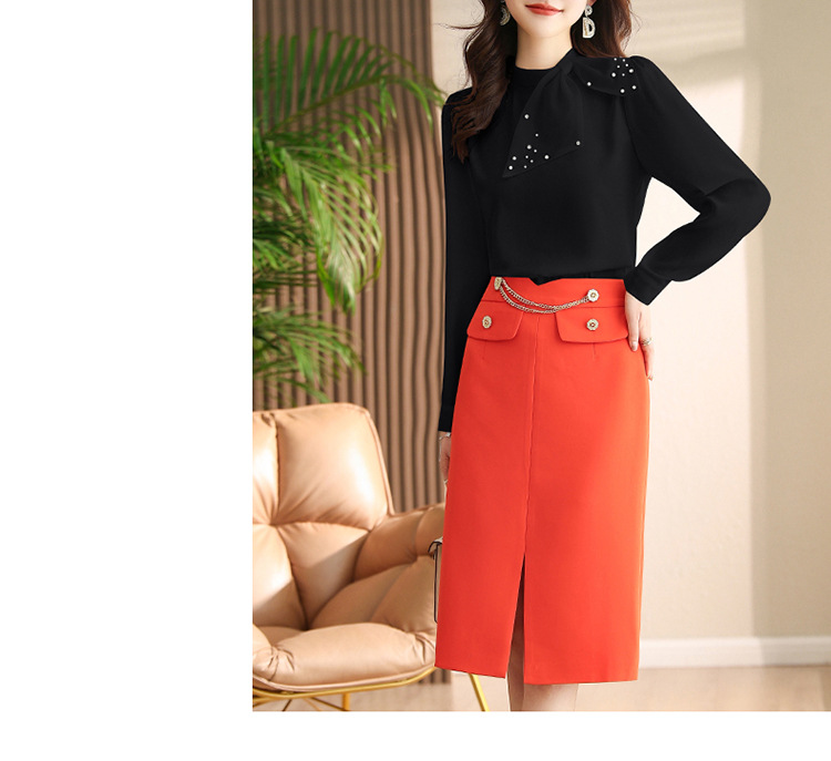 港风复古时尚漂亮洋气减龄气质小衫搭配半裙两件套套裙HR-WHA1069