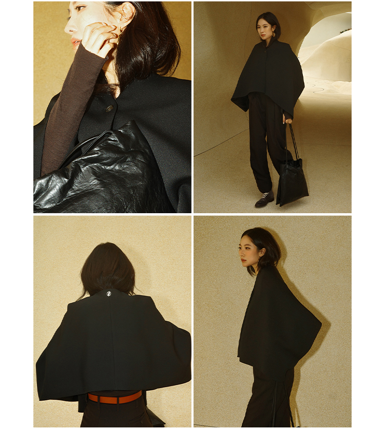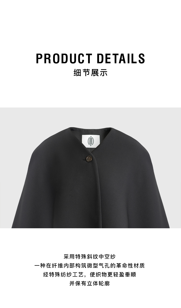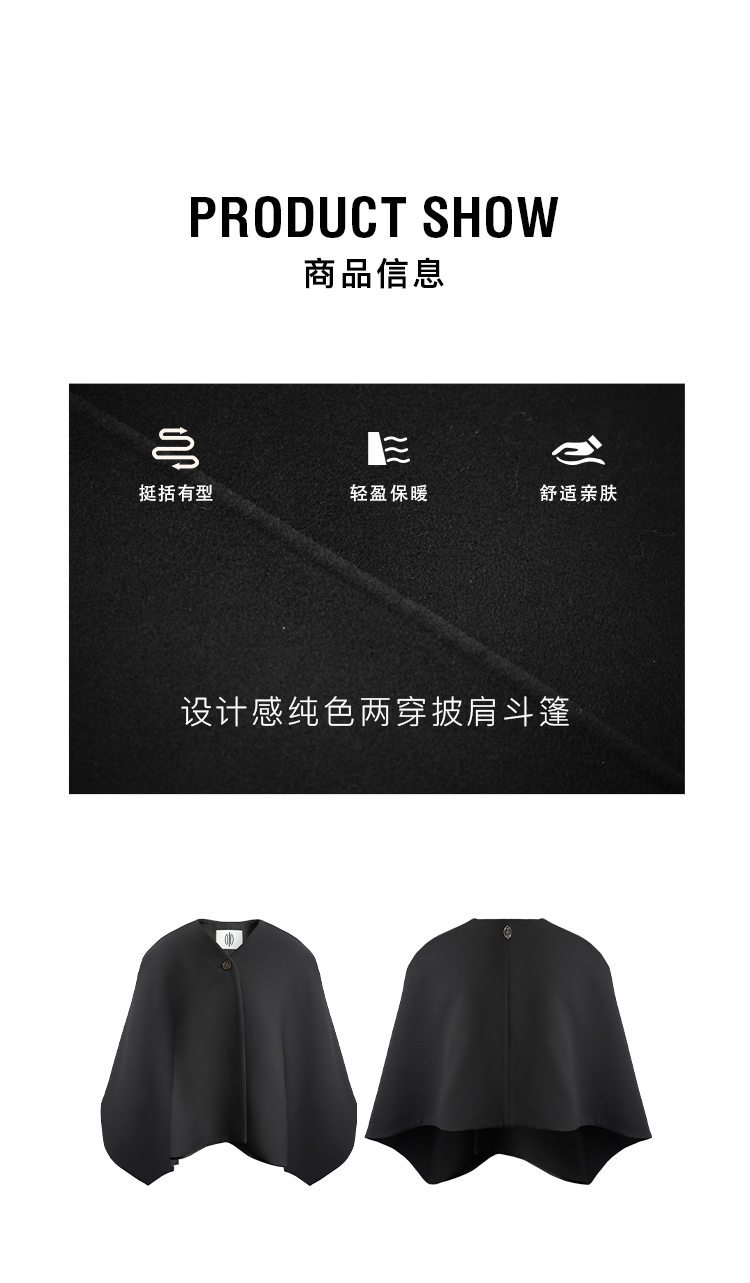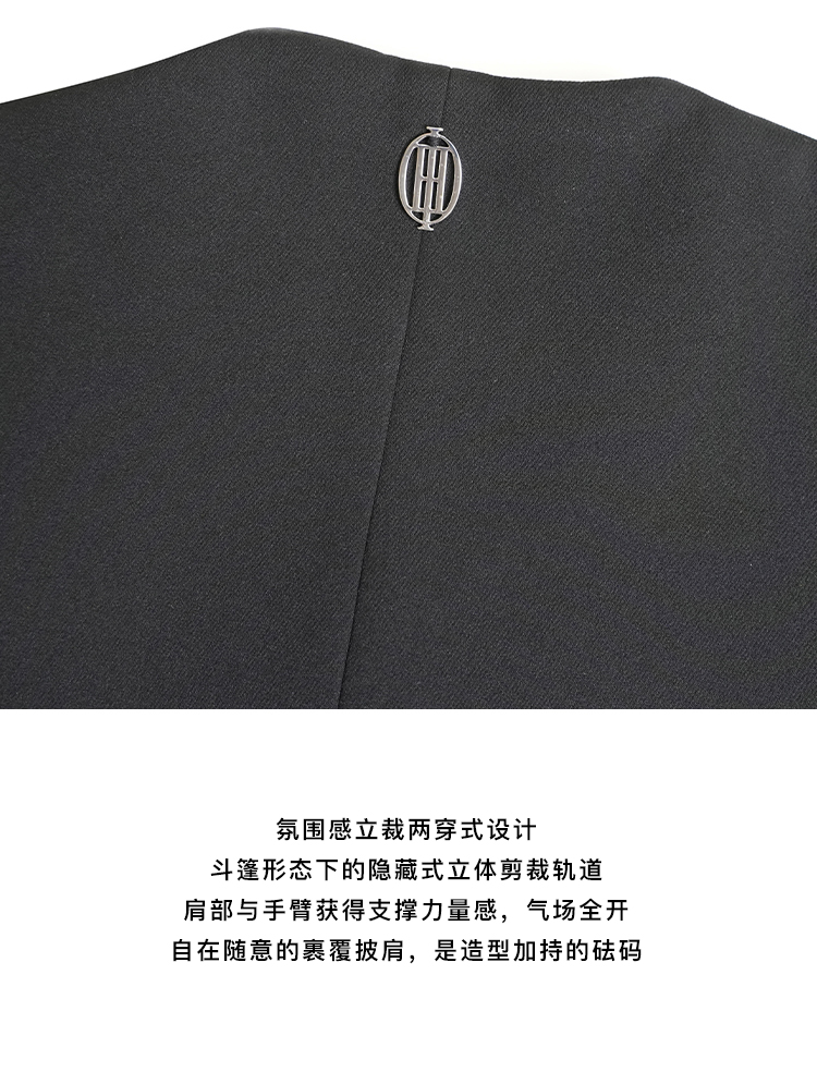 HIDEMI 设计感纯色两穿披肩披风斗篷外套