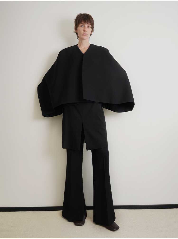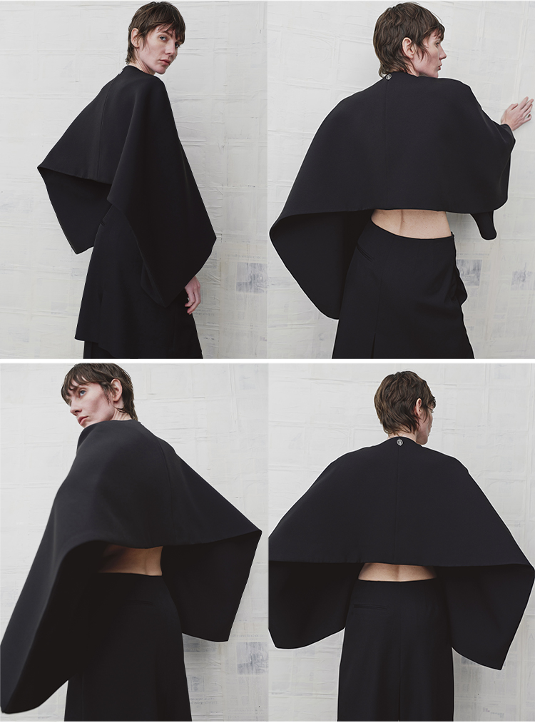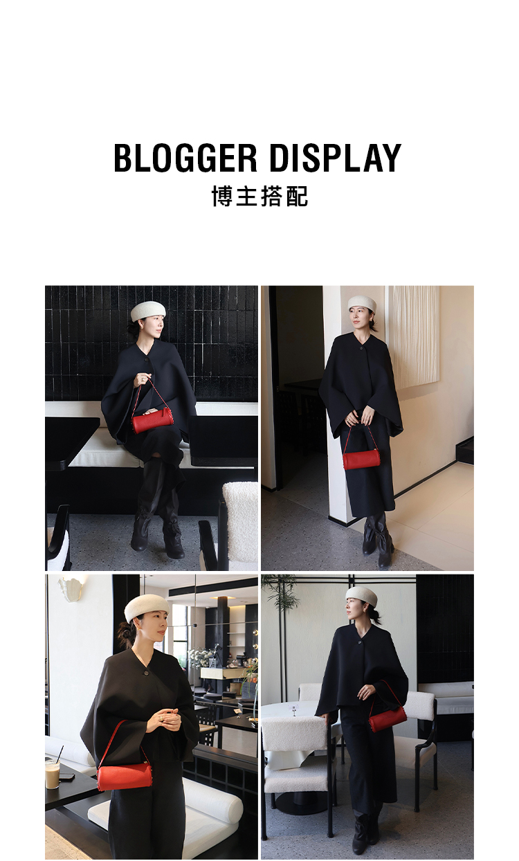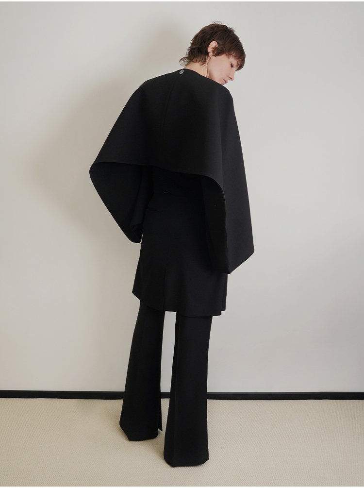 HIDEMI 设计感纯色两穿披肩披风斗篷外套