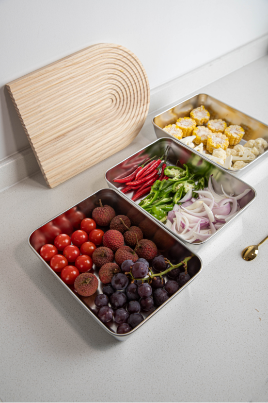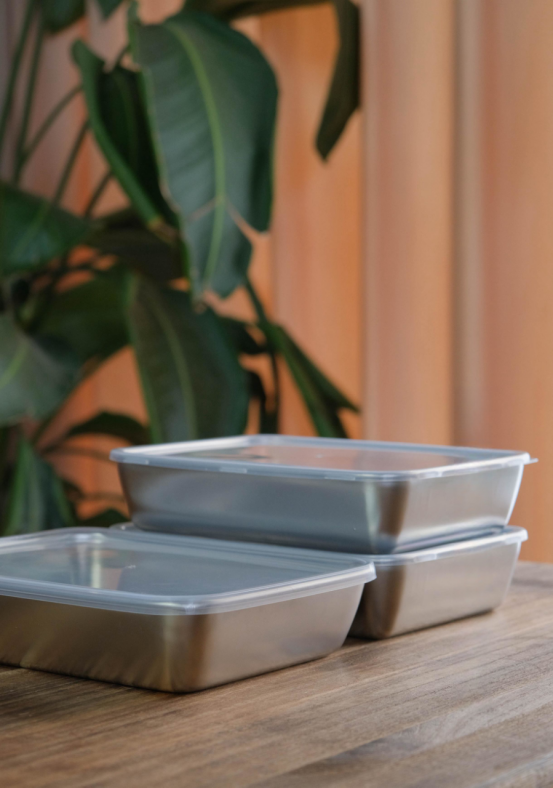 SUS304食品级不锈钢材质💥 生熟食安心放,三个装荤素分类 加厚板材一体压铸成型 质感卷边不伤手 通体电解工艺不易粘黏更好清洗 日常做为便当盒、冰箱收纳密封盒都hin不错 一套个,每个尺寸约26*20*6CM 加大加深,巨扛造巨能装❗ 轻松搞定各类食材,满足所有杂物装盛需求~ 不用时都可叠放不占任何空间❗