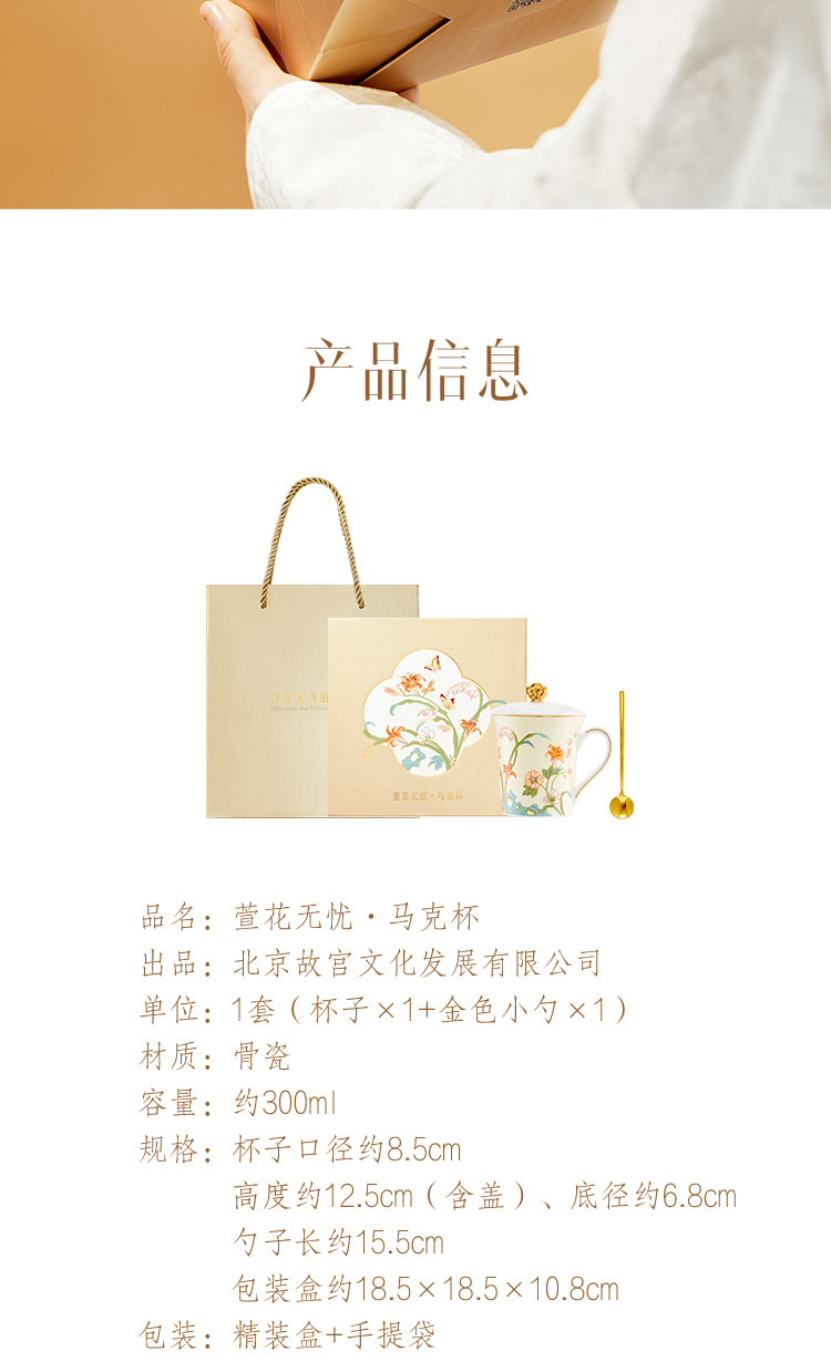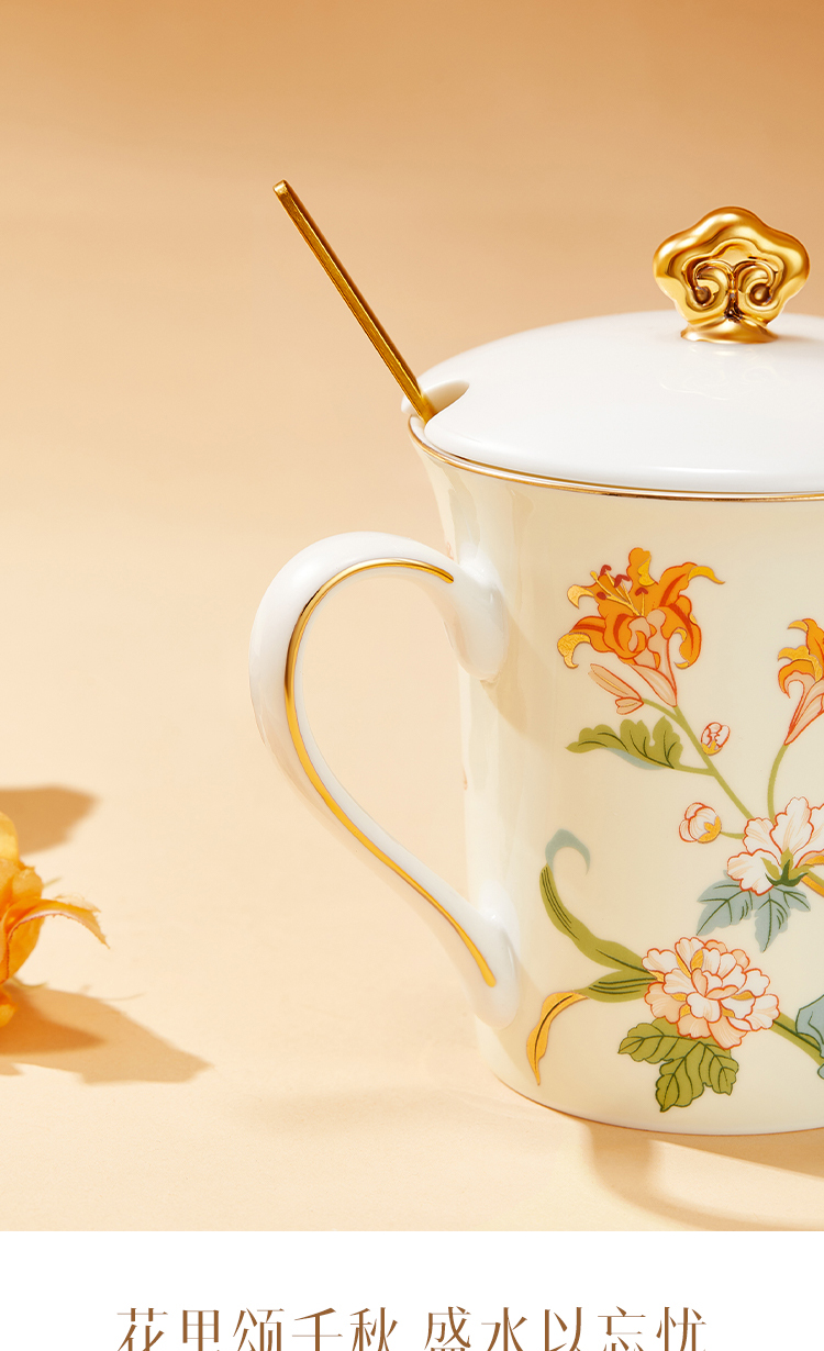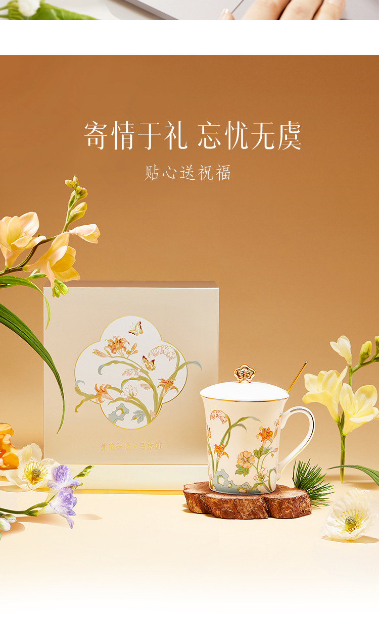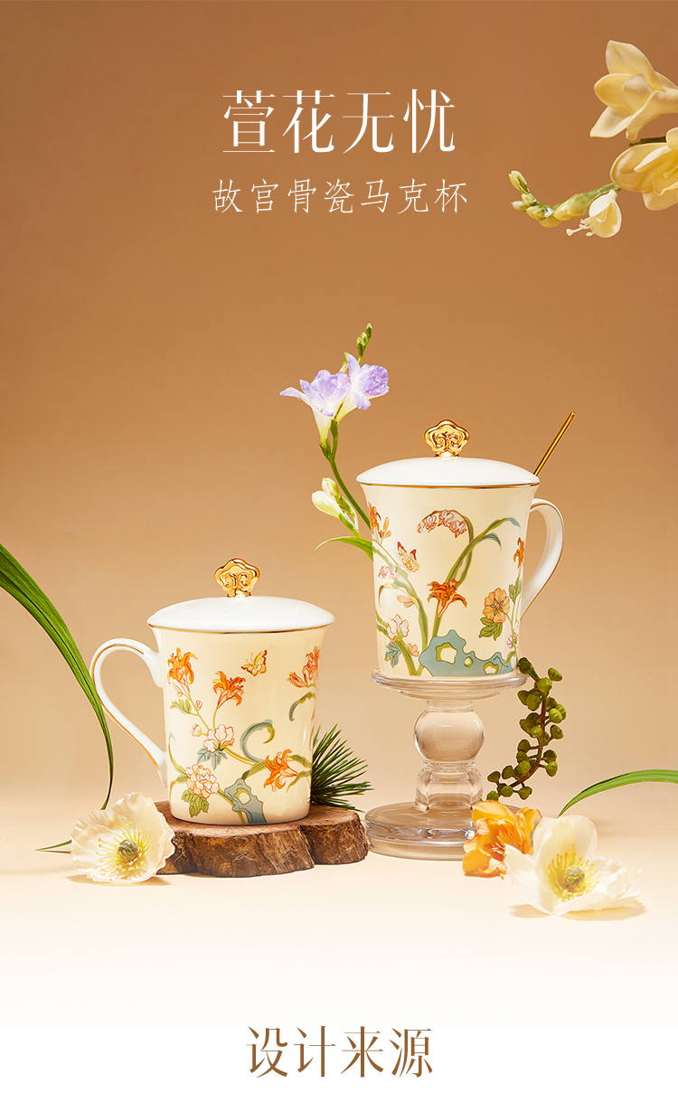 【故宫茶具】萱草无忧骨瓷马克杯水杯博物馆文创杯子生日礼物