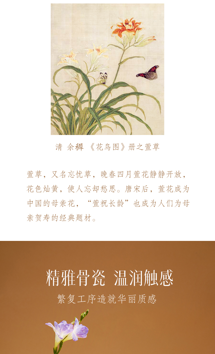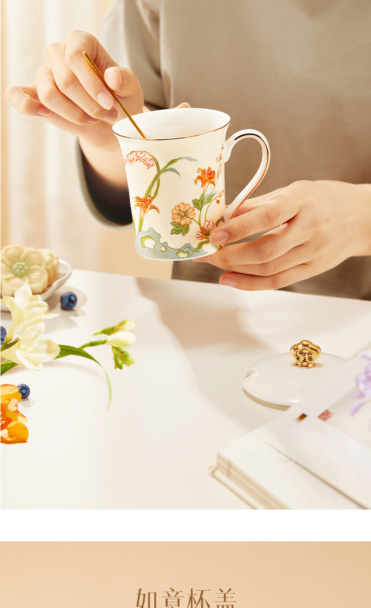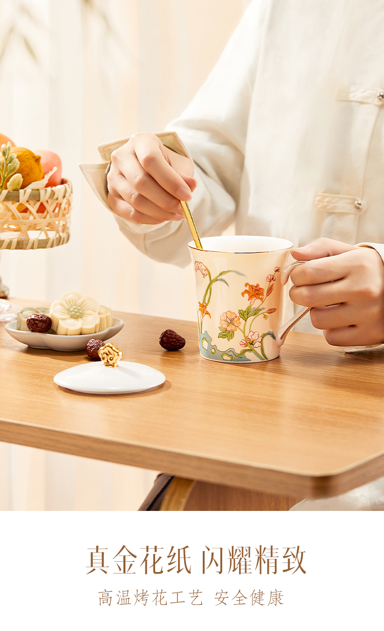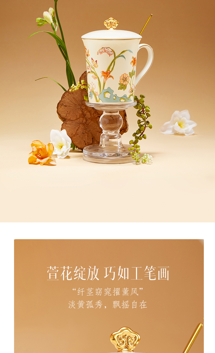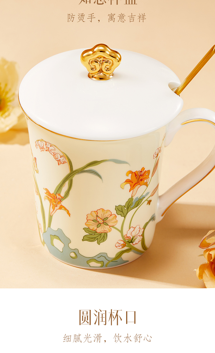 【故宫茶具】萱草无忧骨瓷马克杯水杯博物馆文创杯子生日礼物