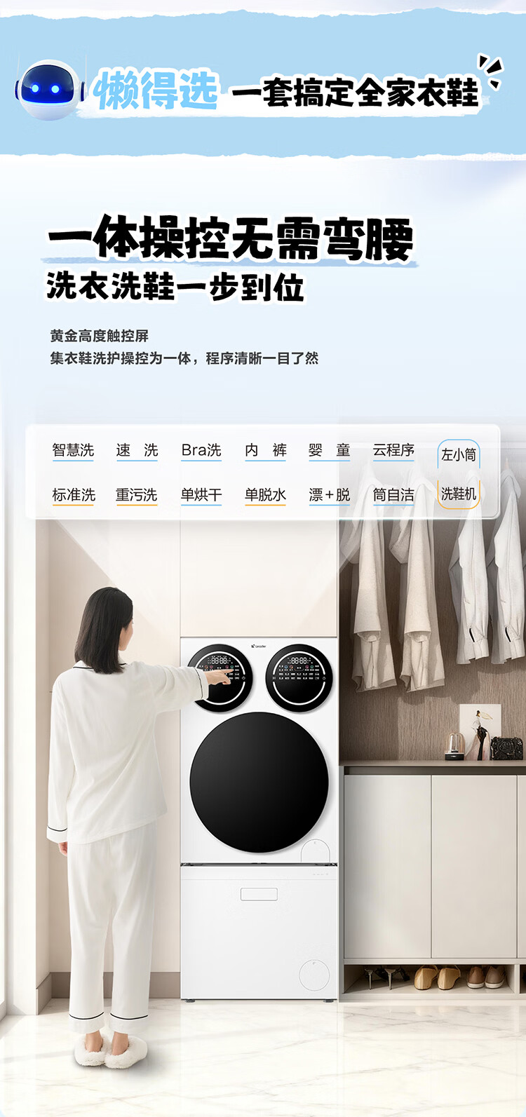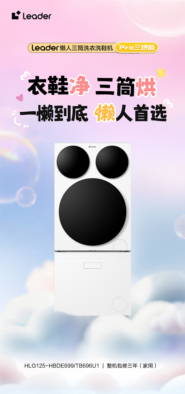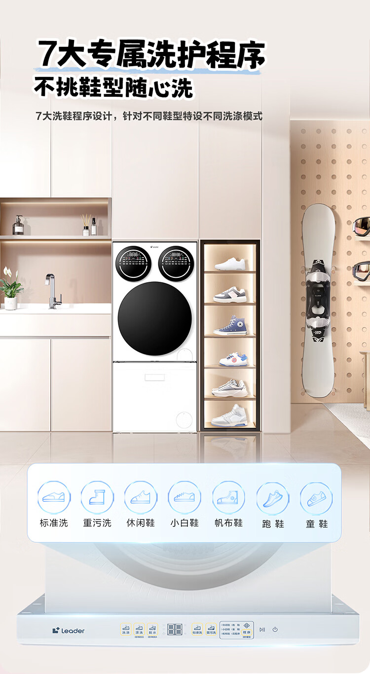 Leader海尔智家懒人三筒三烘洗衣+洗鞋机套装pro【三筒三烘版】滚筒洗烘一体三烘版组合分区烘干衣机 新品标尺【 三筒 三烘+洗鞋机套装】衣鞋同净