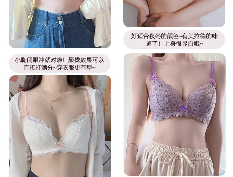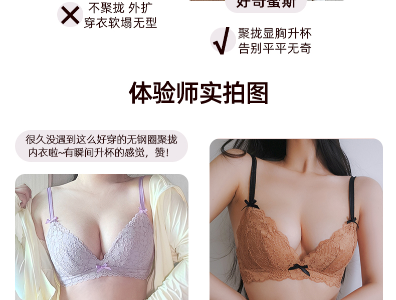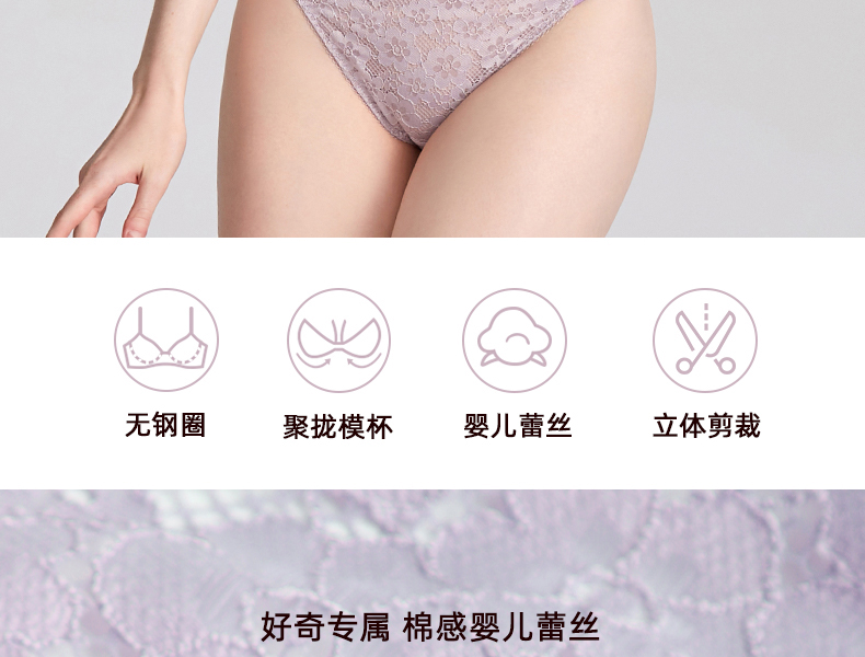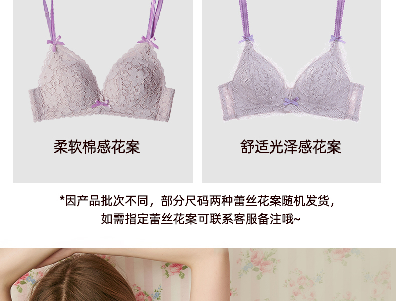 好奇蜜斯蕾丝内衣女夏小胸聚拢无钢圈性感文胸套装调整型薄款胸罩新版莱西