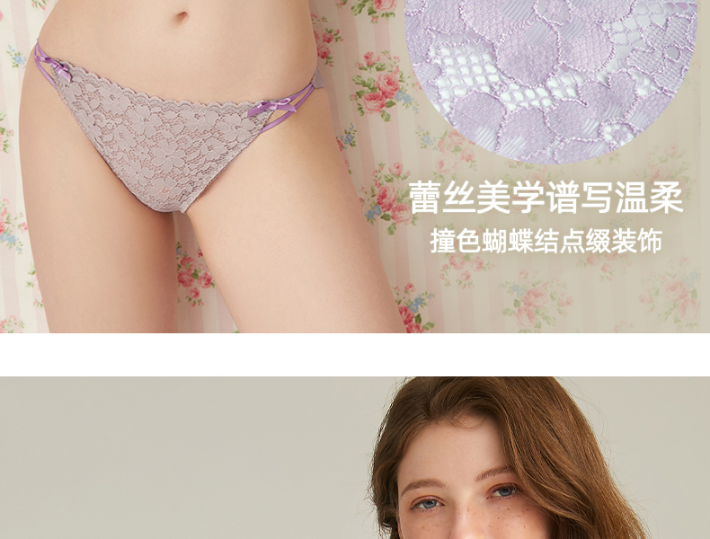 3条98元好奇蜜斯性感超薄蕾丝低腰三角内裤女抗菌纯棉裆纯欲舒适 克萝内裤