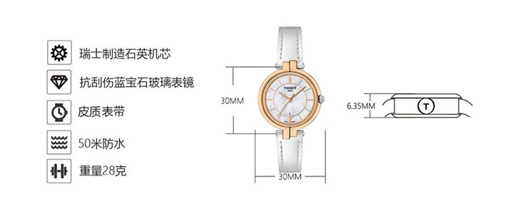 | 防水 | 50 m | 表带 | 白色皮质表带 蝴蝶扣 |