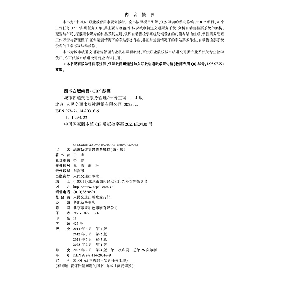 书名:城市轨道交通票务管理(第4版)