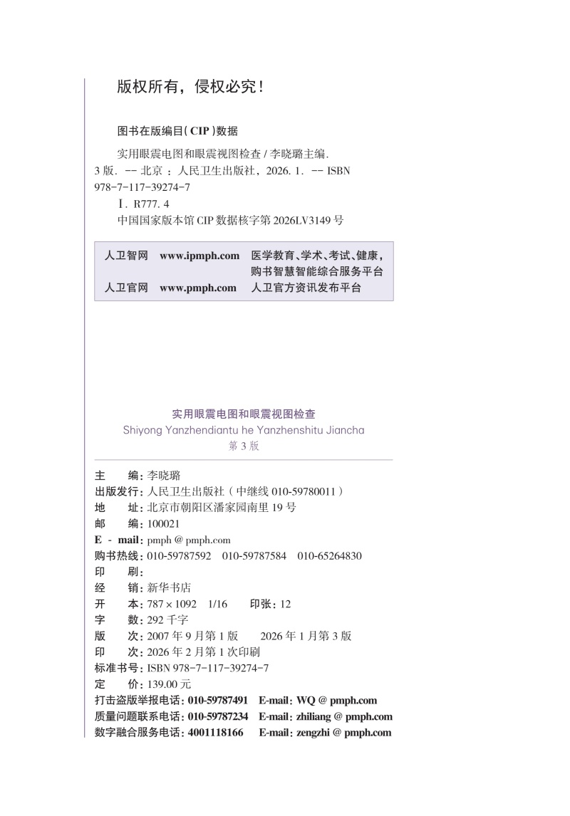 书名:实用眼震电图和眼震视图检查(第3版)