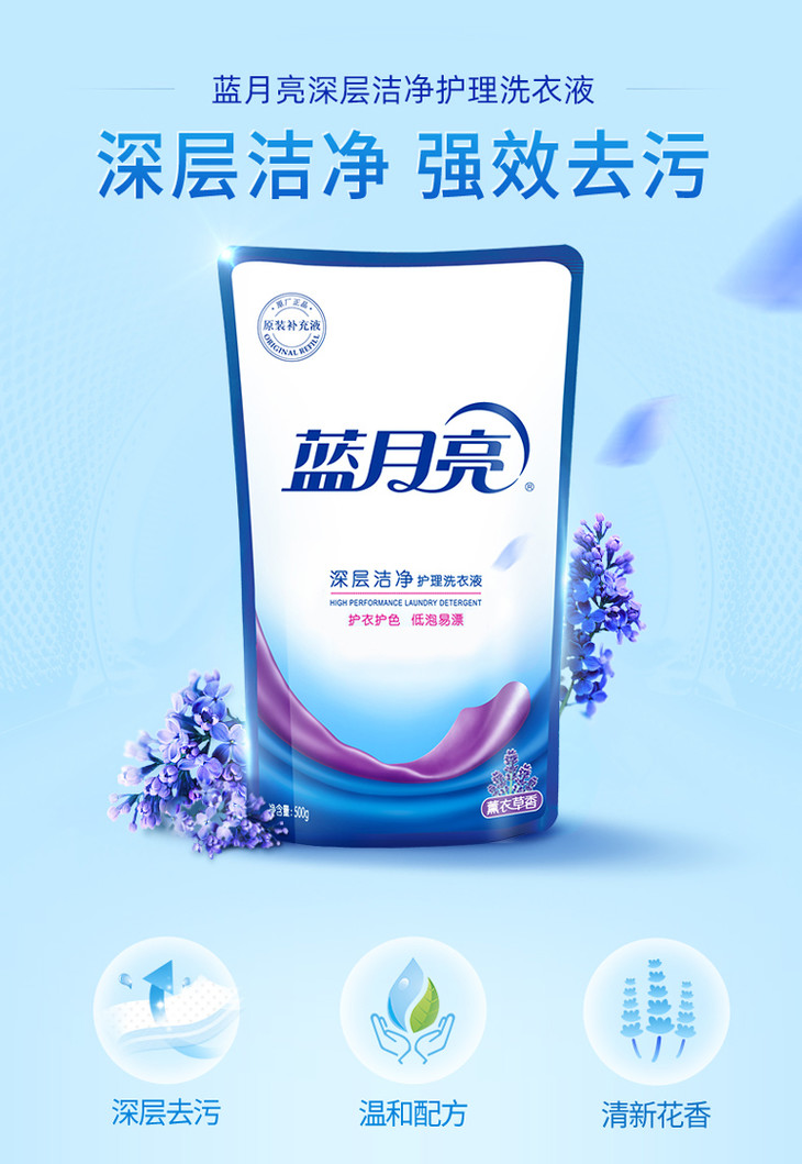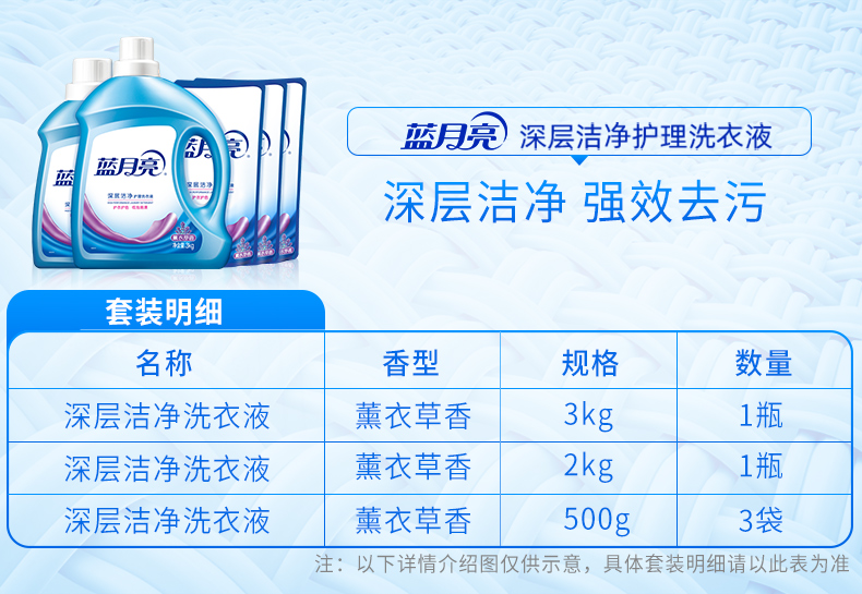 蓝月亮深层洁净洗衣液3kg瓶+2kg瓶+500g*3袋