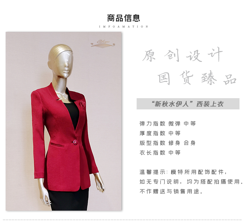 【断码】XL码•YIQU |“新秋水伊人”西装上衣(朱红)