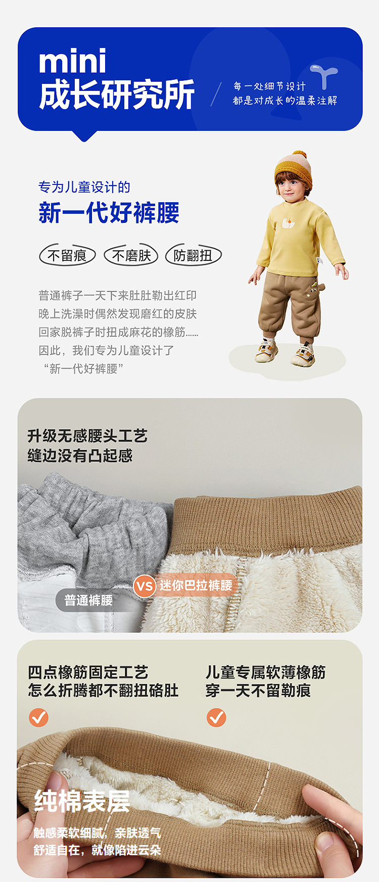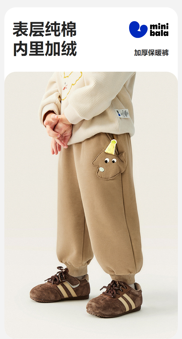 迷你巴拉巴拉男女童宝宝裤子2025冬新品保暖内里加绒柔软亲肤长裤