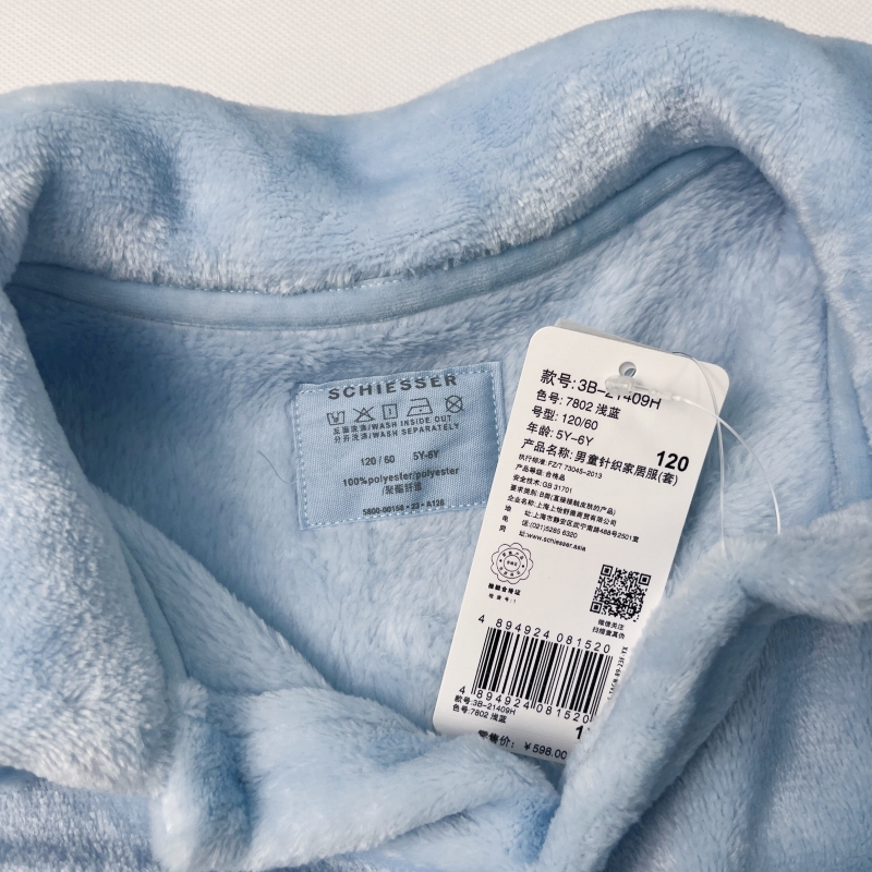 【法兰绒】SCHIESSER舒雅男童法兰绒厚款毛绒睡衣家居服套装3B/21409H
