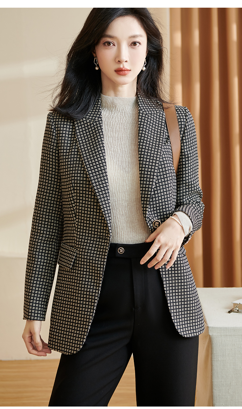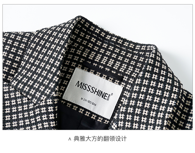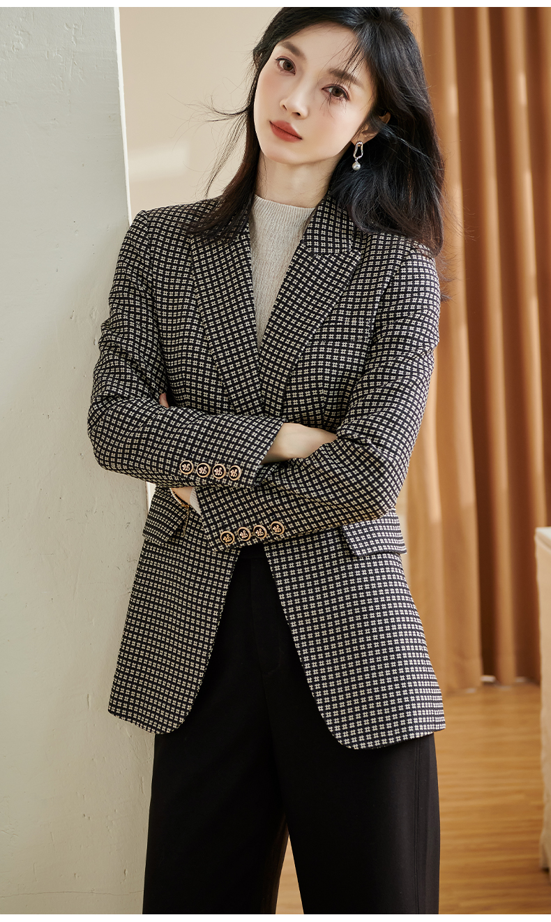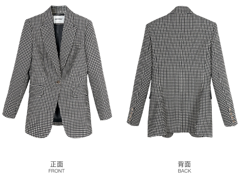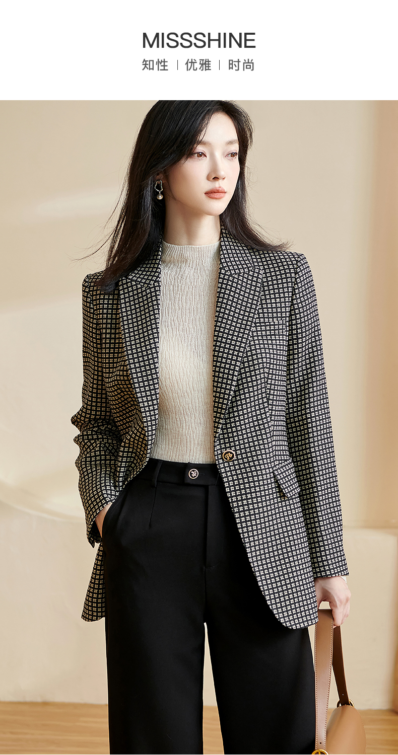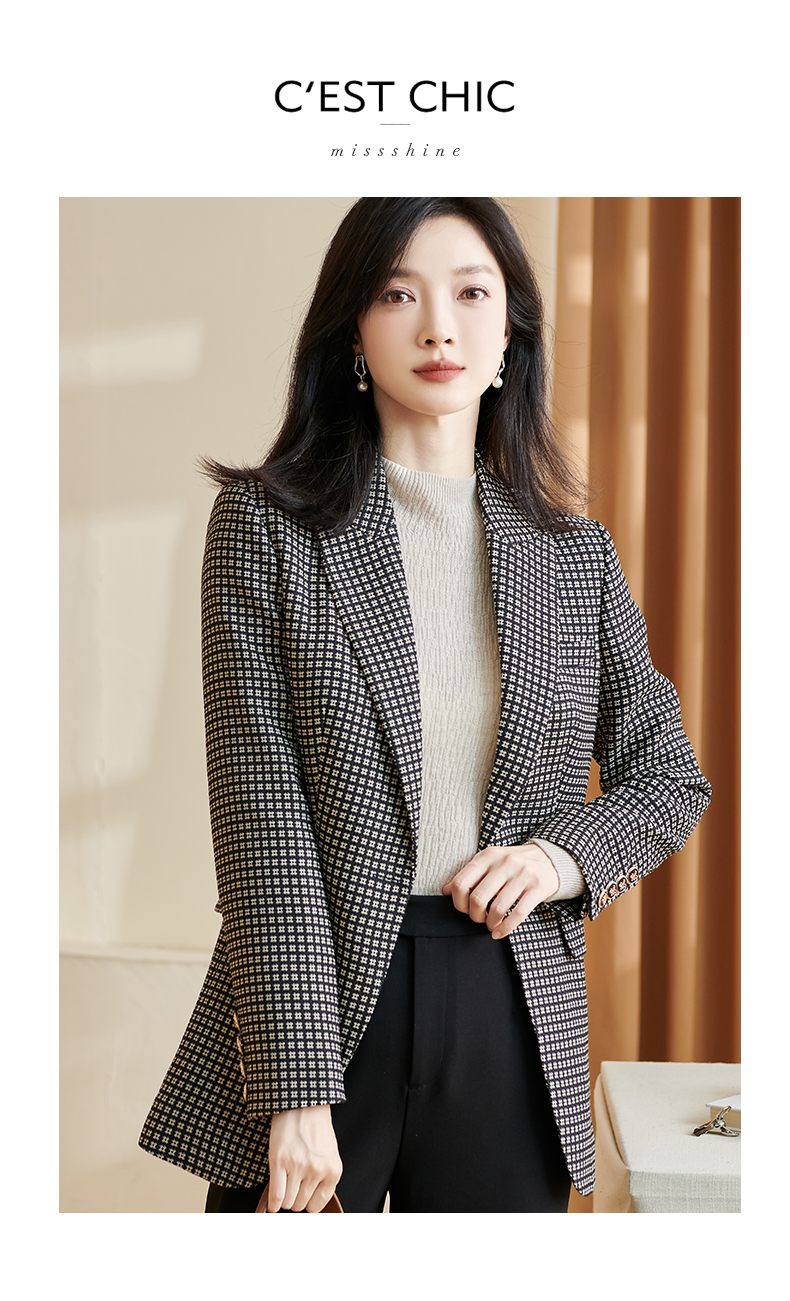 剩S 【 现货】米思阳2024秋季新款OL职场风格纹西装戗驳领一粒扣长袖外套女2686