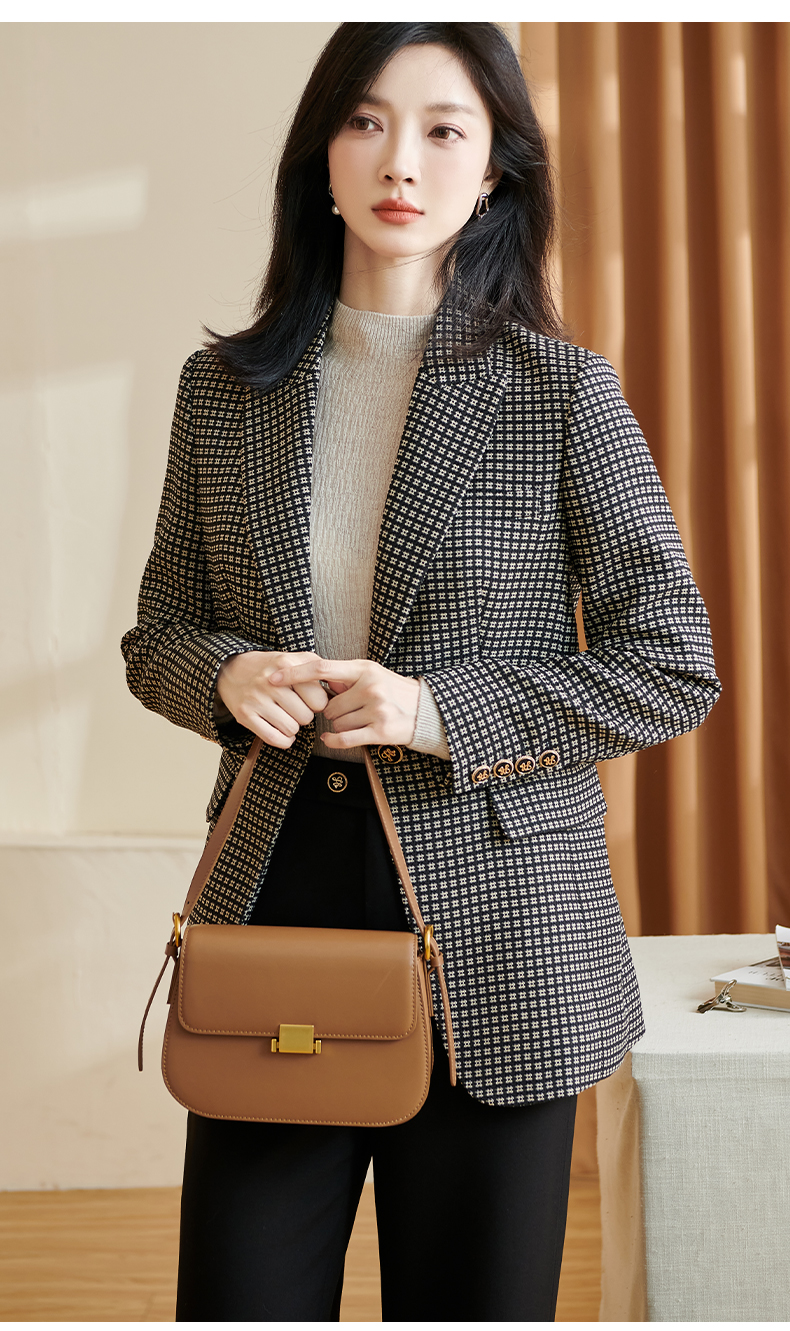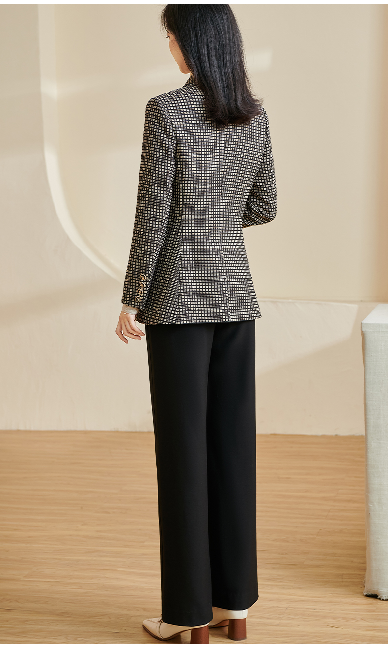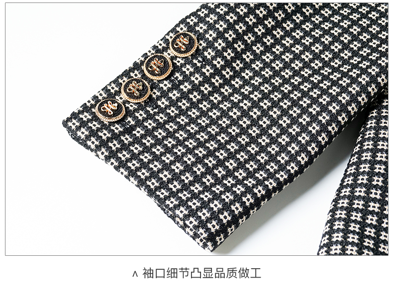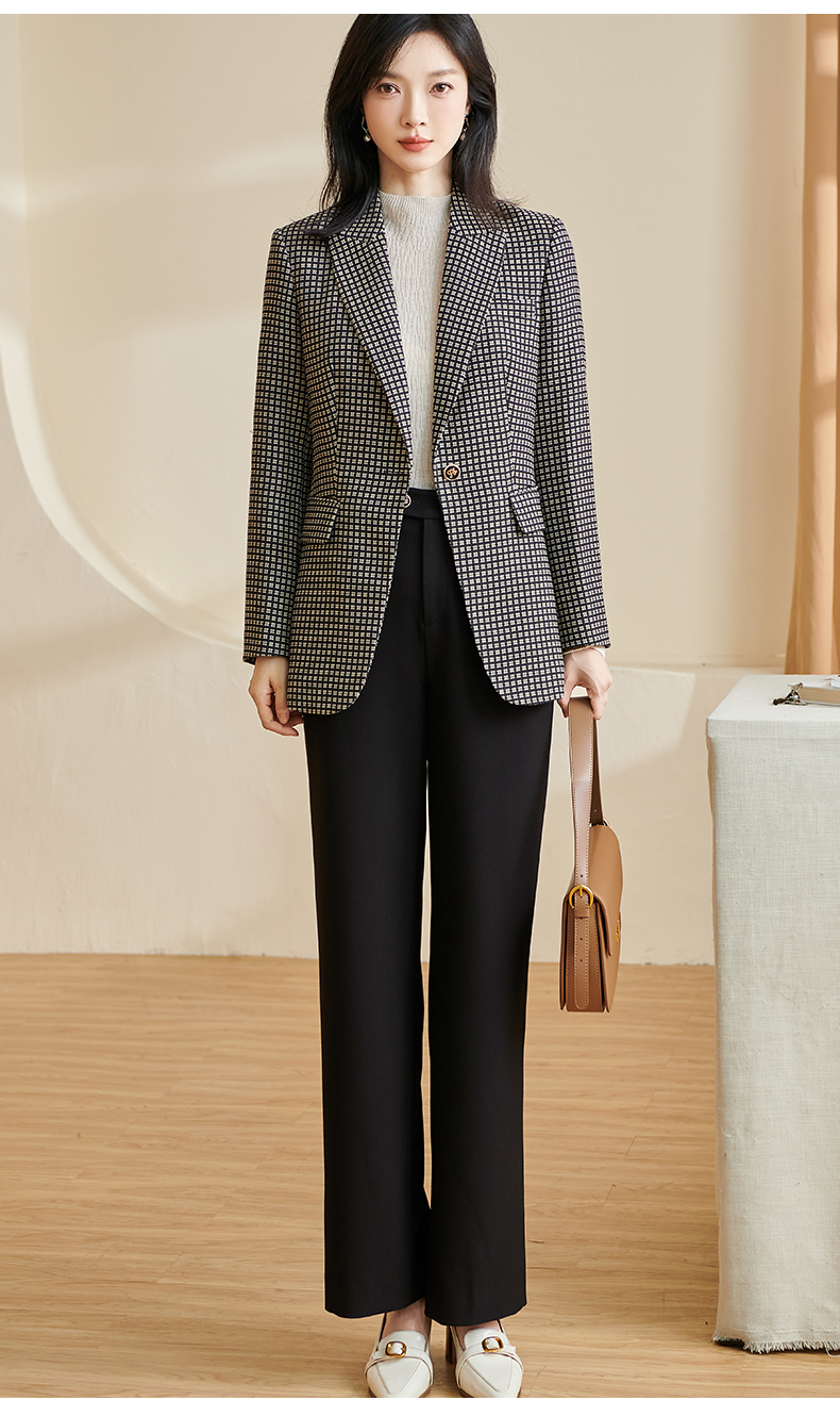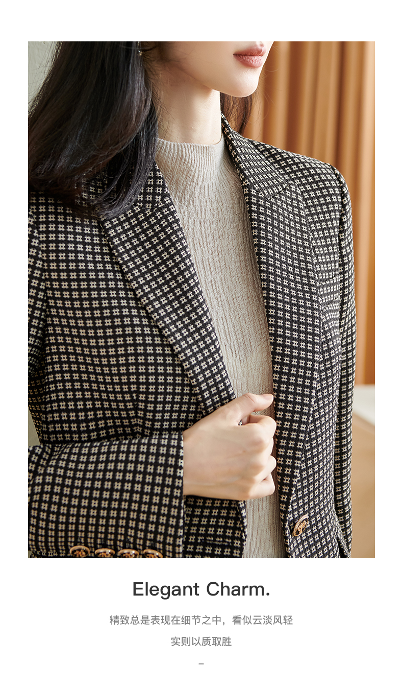 剩S 【 现货】米思阳2024秋季新款OL职场风格纹西装戗驳领一粒扣长袖外套女2686