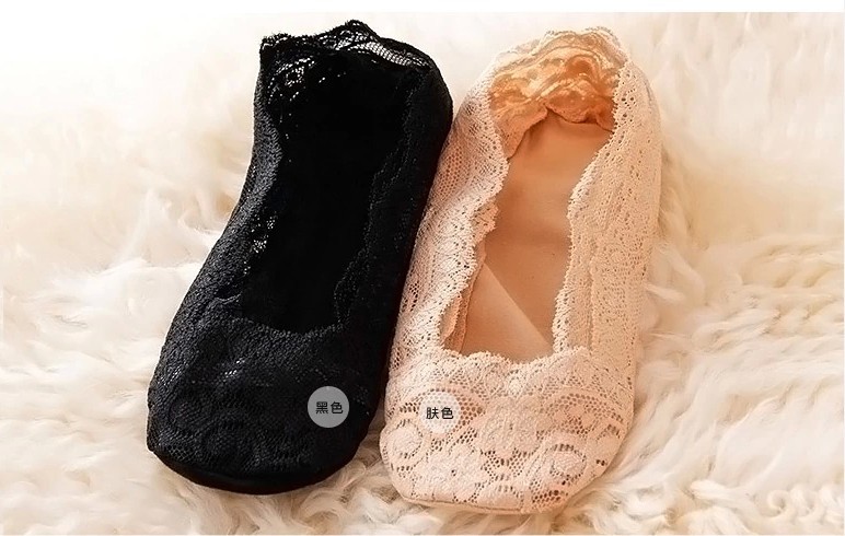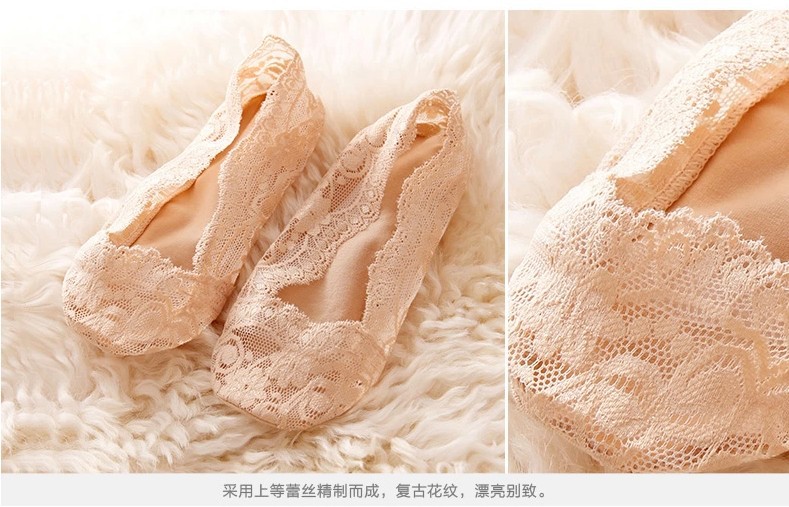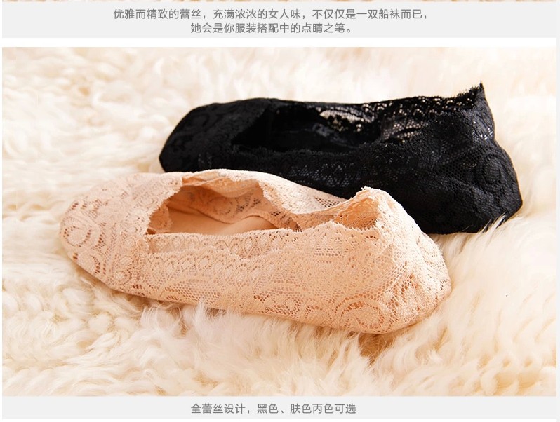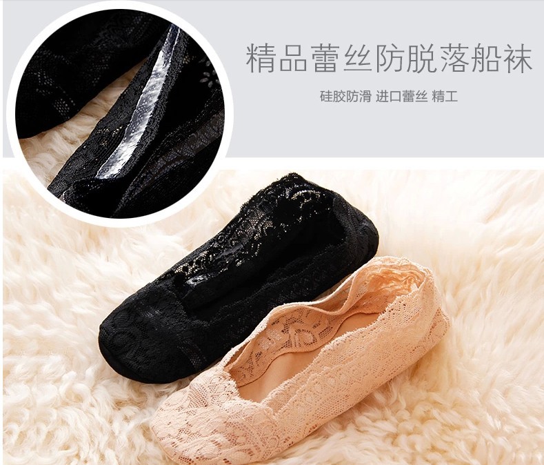 女士袜子浅口隐形蕾丝船袜 360°硅胶脚底防滑船袜女薄防脱隐形袜