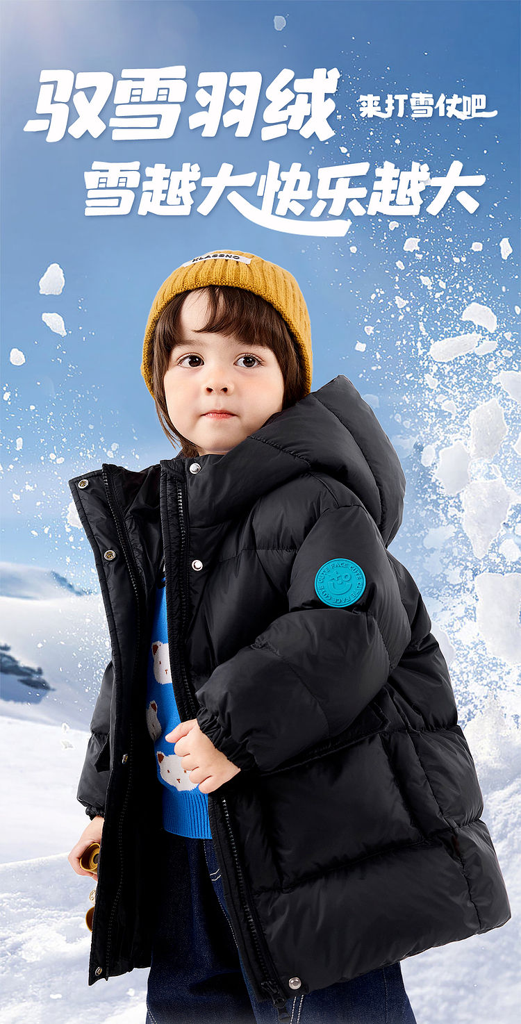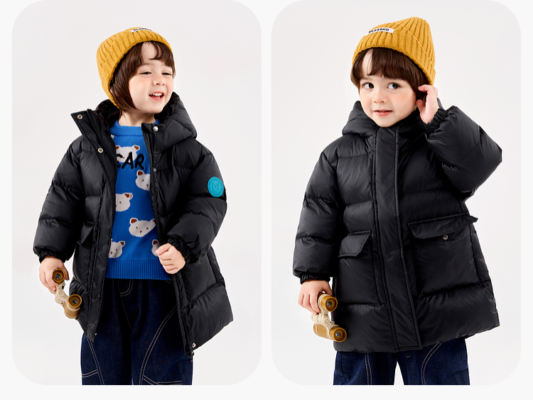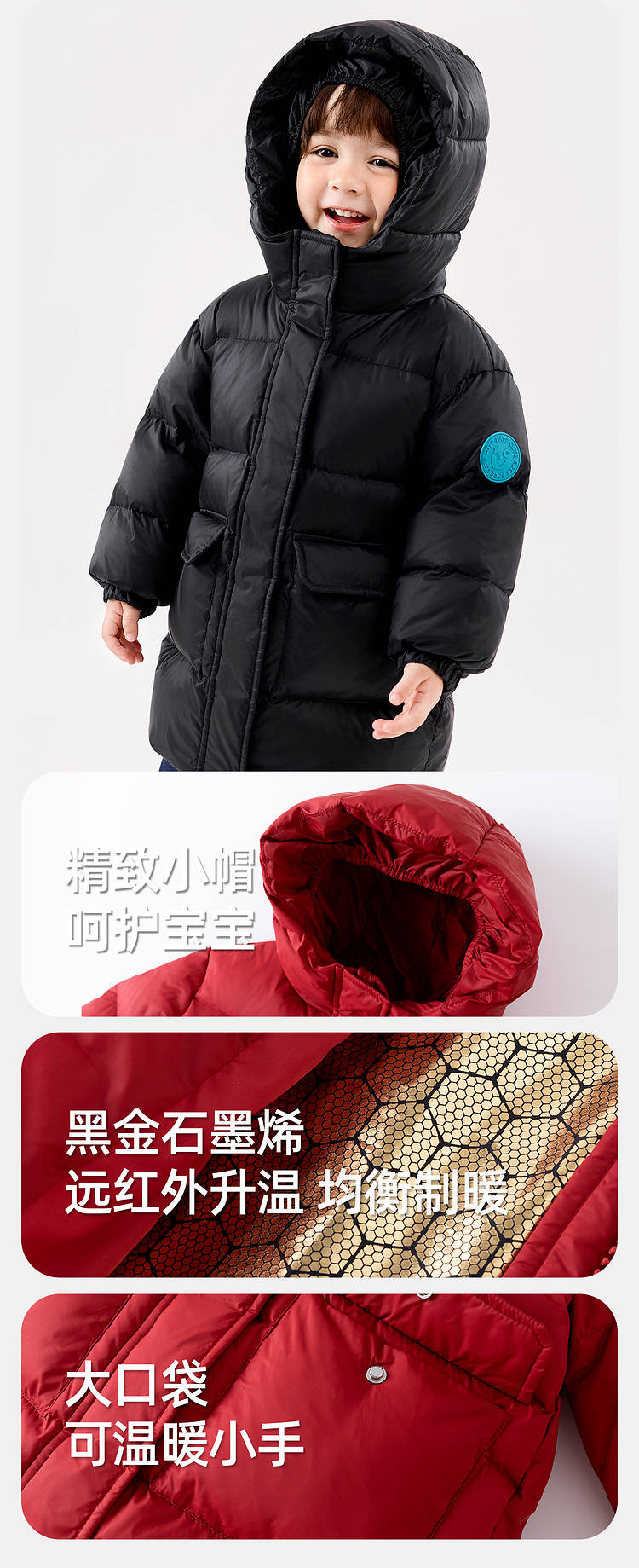 【三防】嘟嘟家宝宝冬季中长款羽绒服儿童保暖外套男童加厚冬装潮