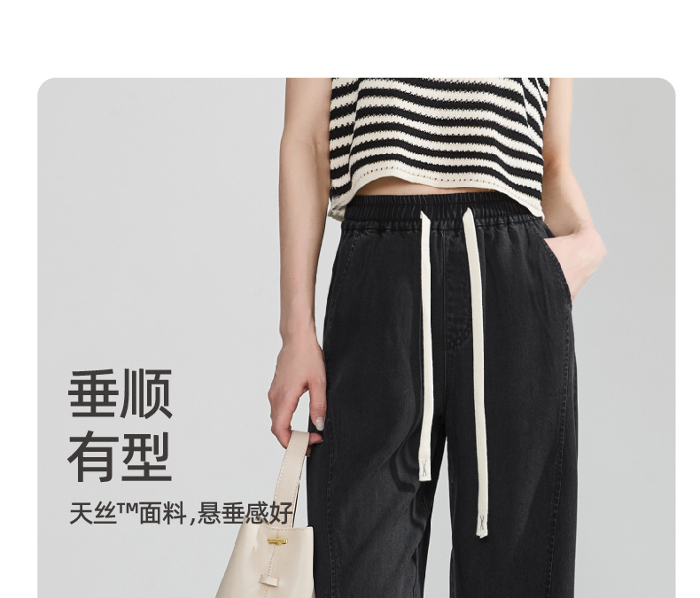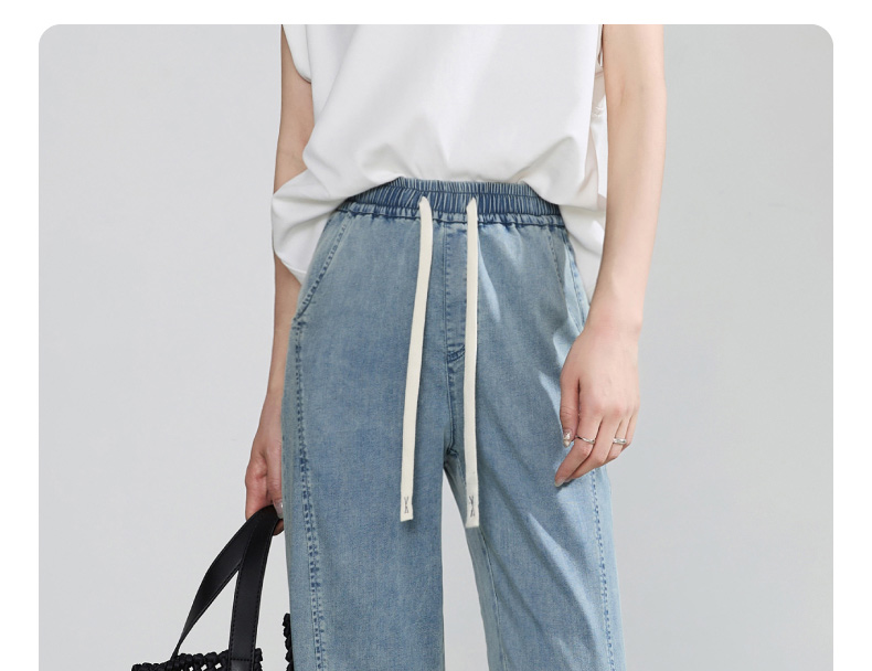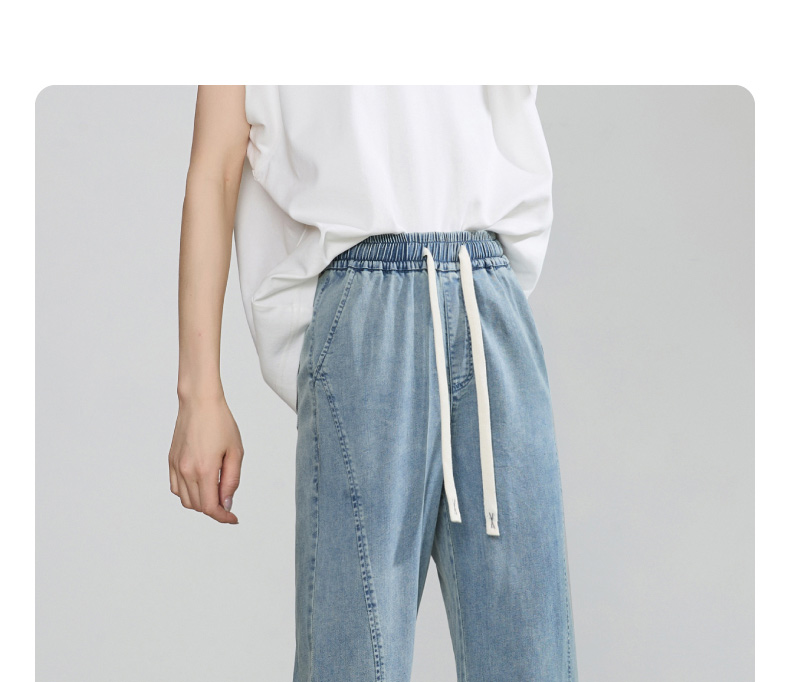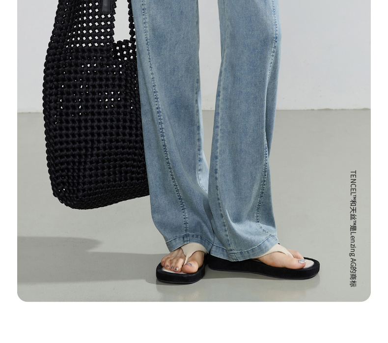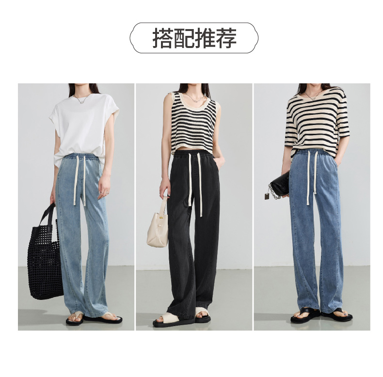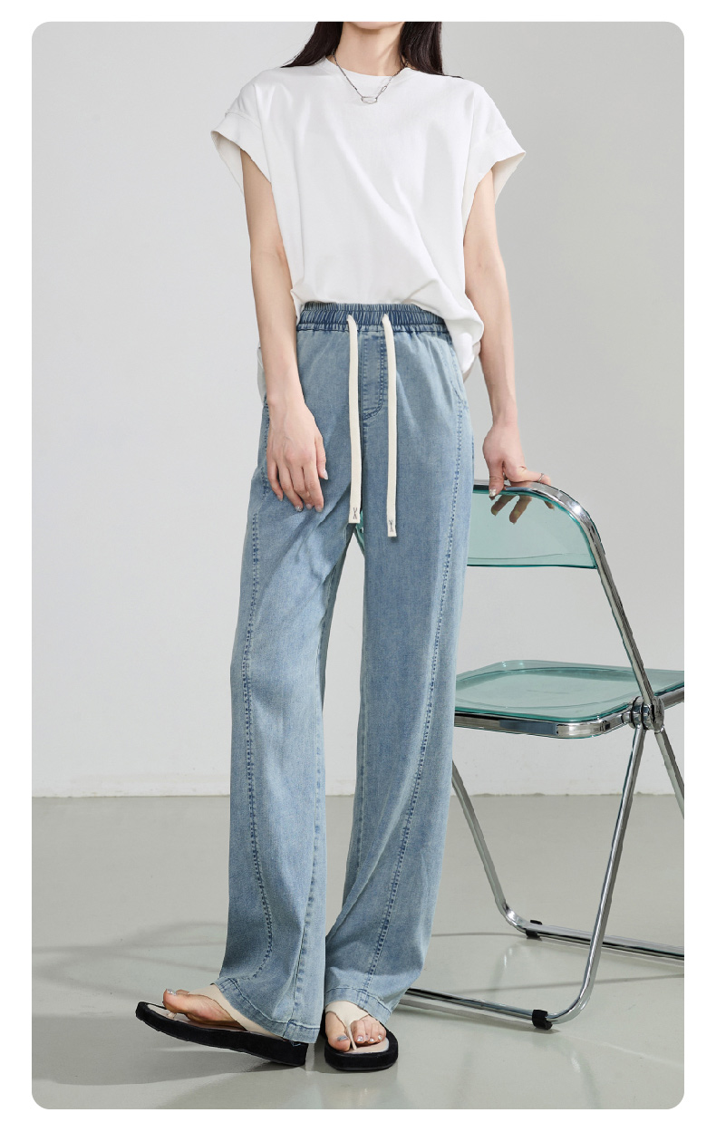 【夏天丝直筒牛仔裤】逸阳薄款垂顺侧缝拼接显瘦裤子1046