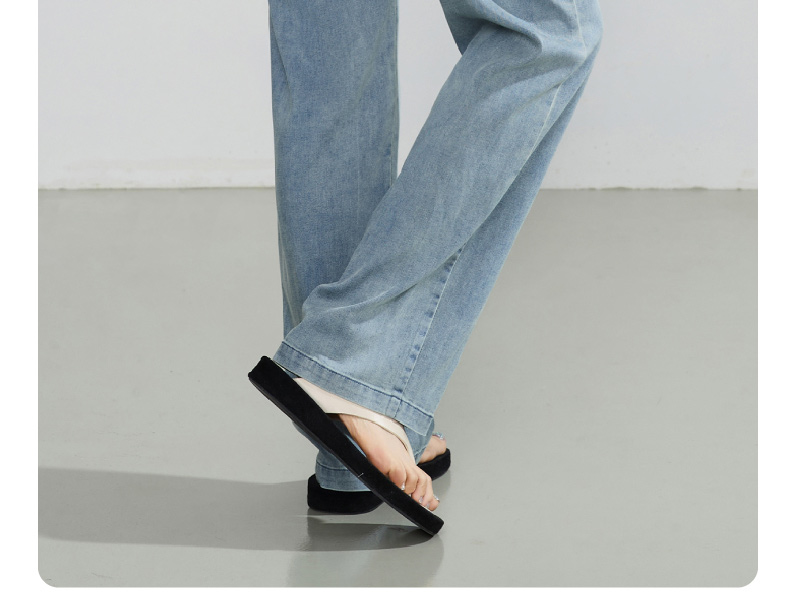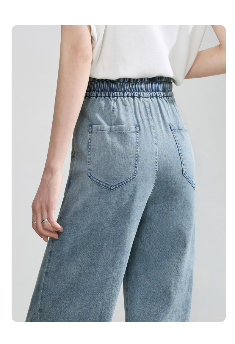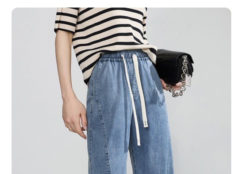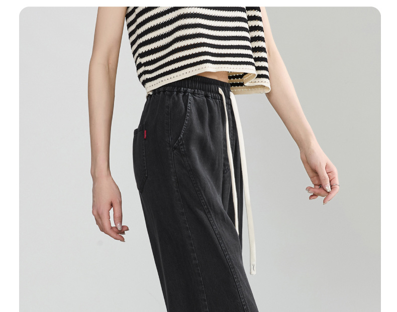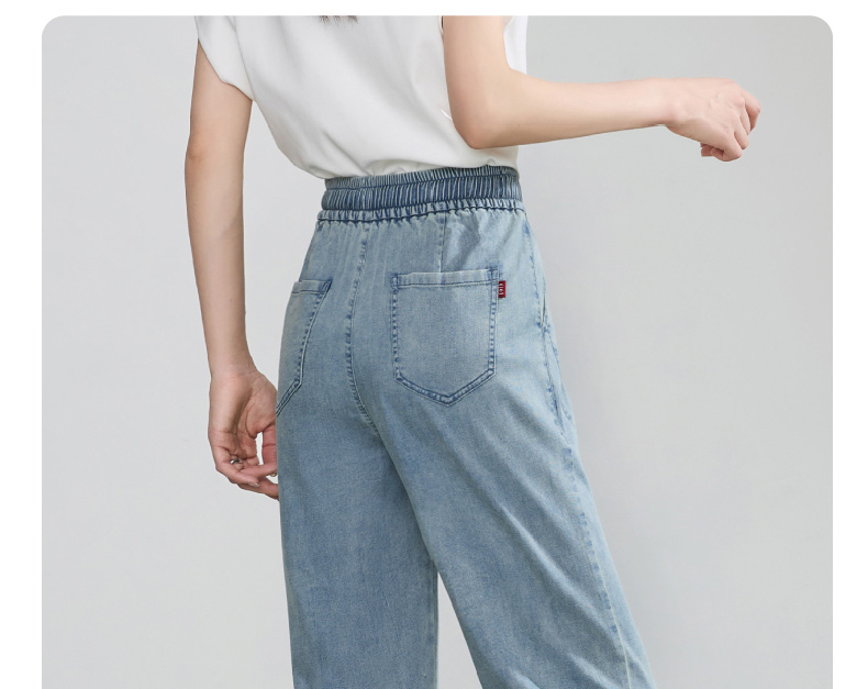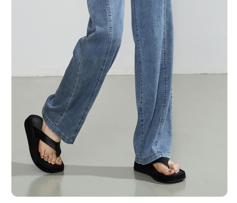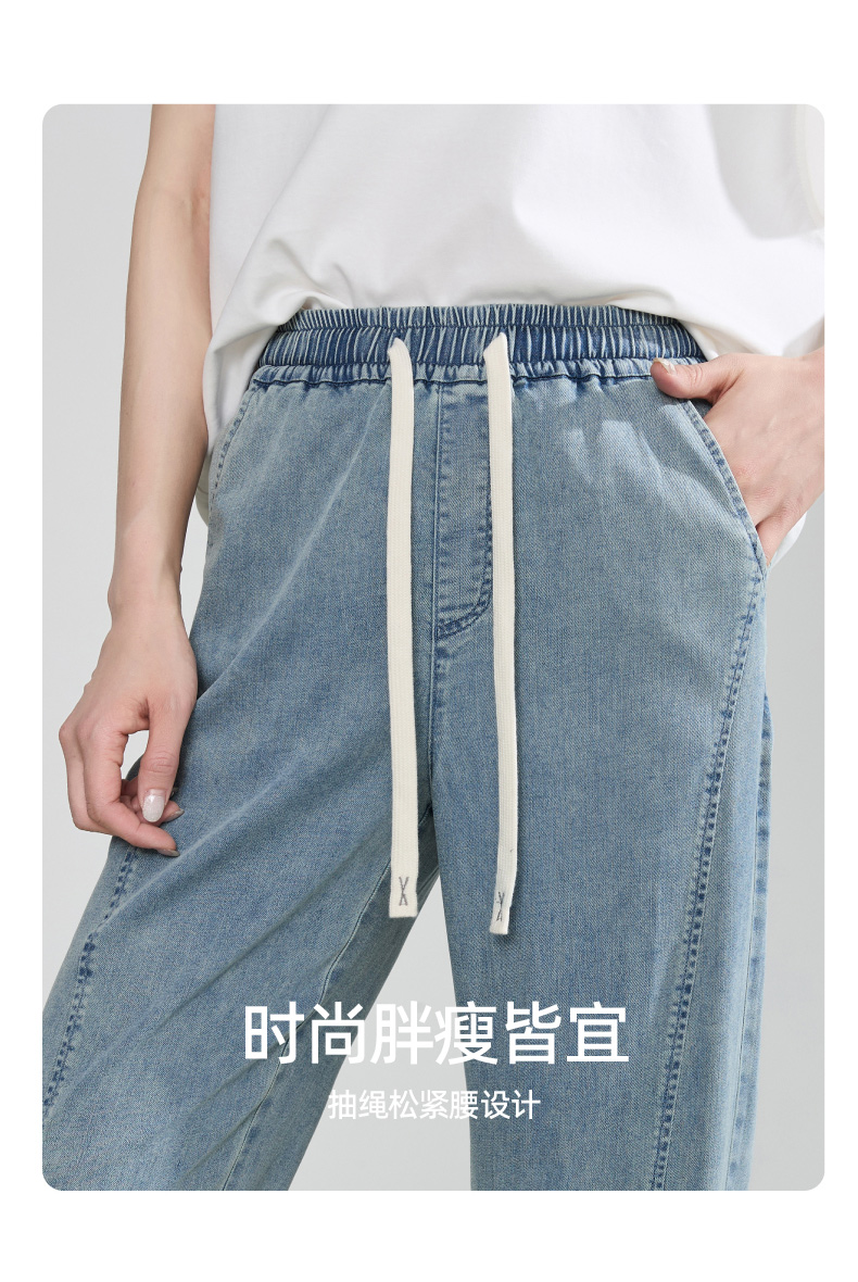 【夏天丝直筒牛仔裤】逸阳薄款垂顺侧缝拼接显瘦裤子1046