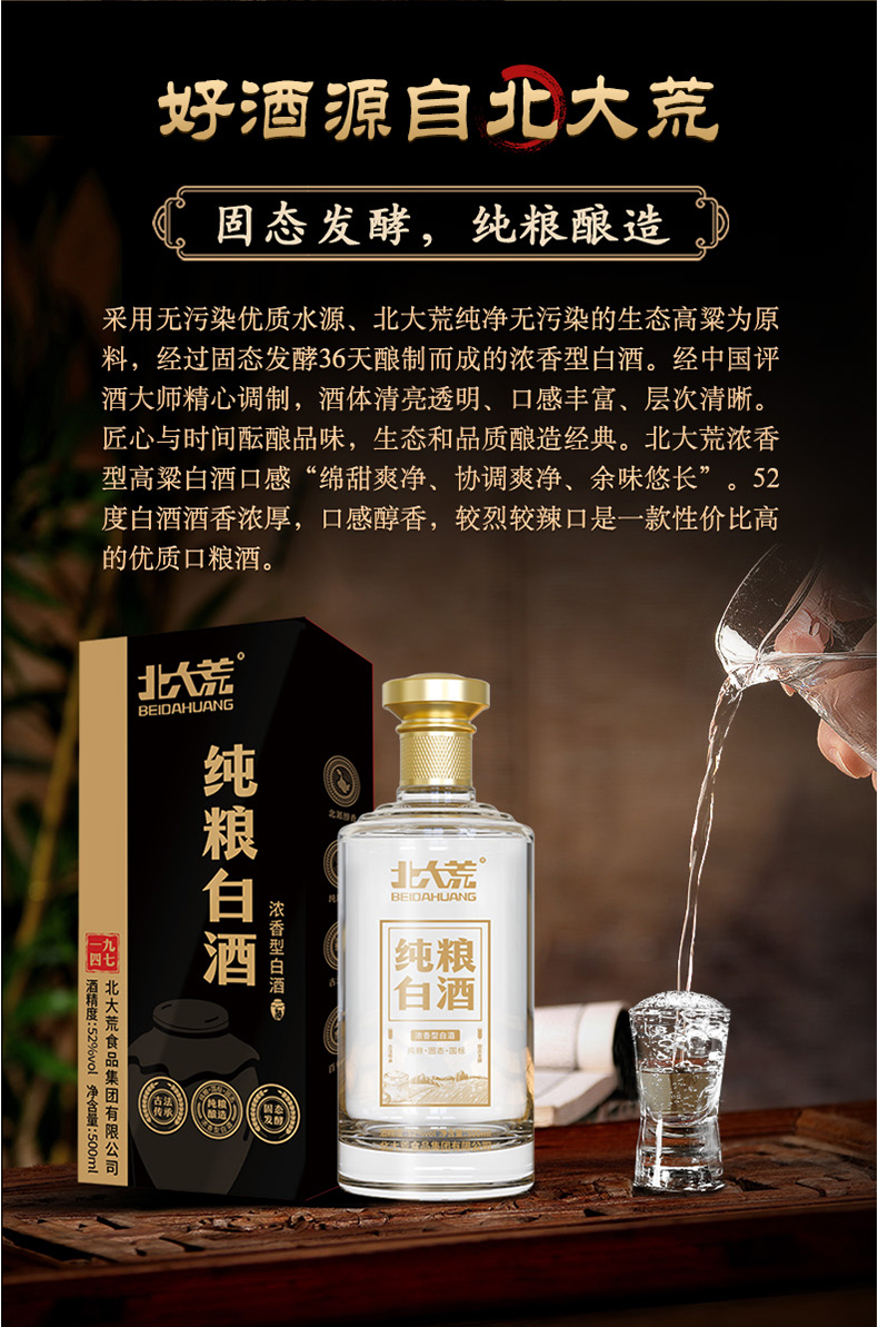 【中国农垦】北大荒纯粮系列白酒(浓香型52度)盒装500ml*2