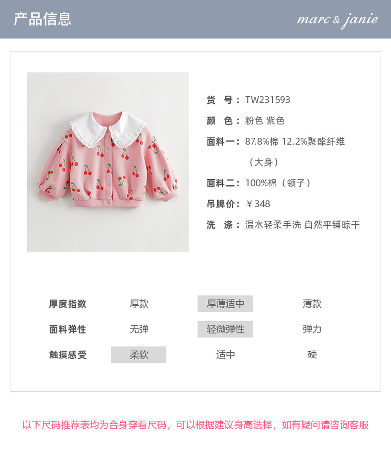 马克珍妮草莓甜心女童花边罗纹T2026年夏装新款560681