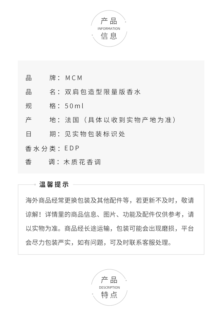 MCM恩思恩经典造型双肩包女士香氛温暖木质香30ml/50ml/75ml 【CDF】