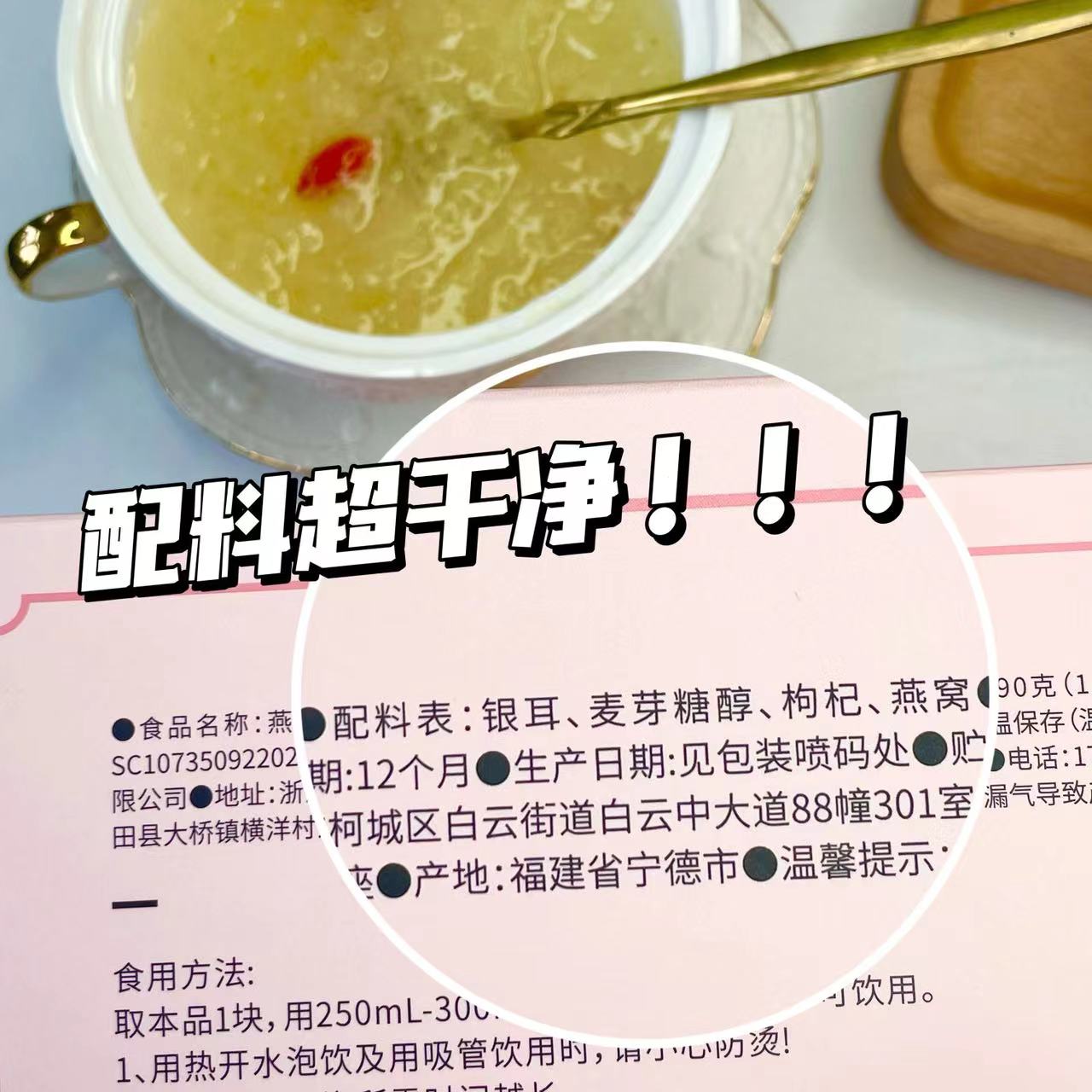配料表超干净,优质选材,真燕窝,真营养!无公害认证,权威质检,放心去吃。