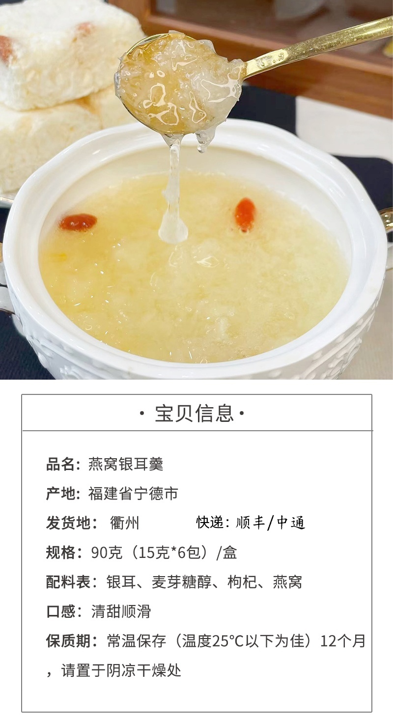 【冻干燕窝银耳羹】买3送1,买5送2,买8送4!选自高山有机银耳,马来西亚、印尼进口燕窝和枸杞优质养生食材。