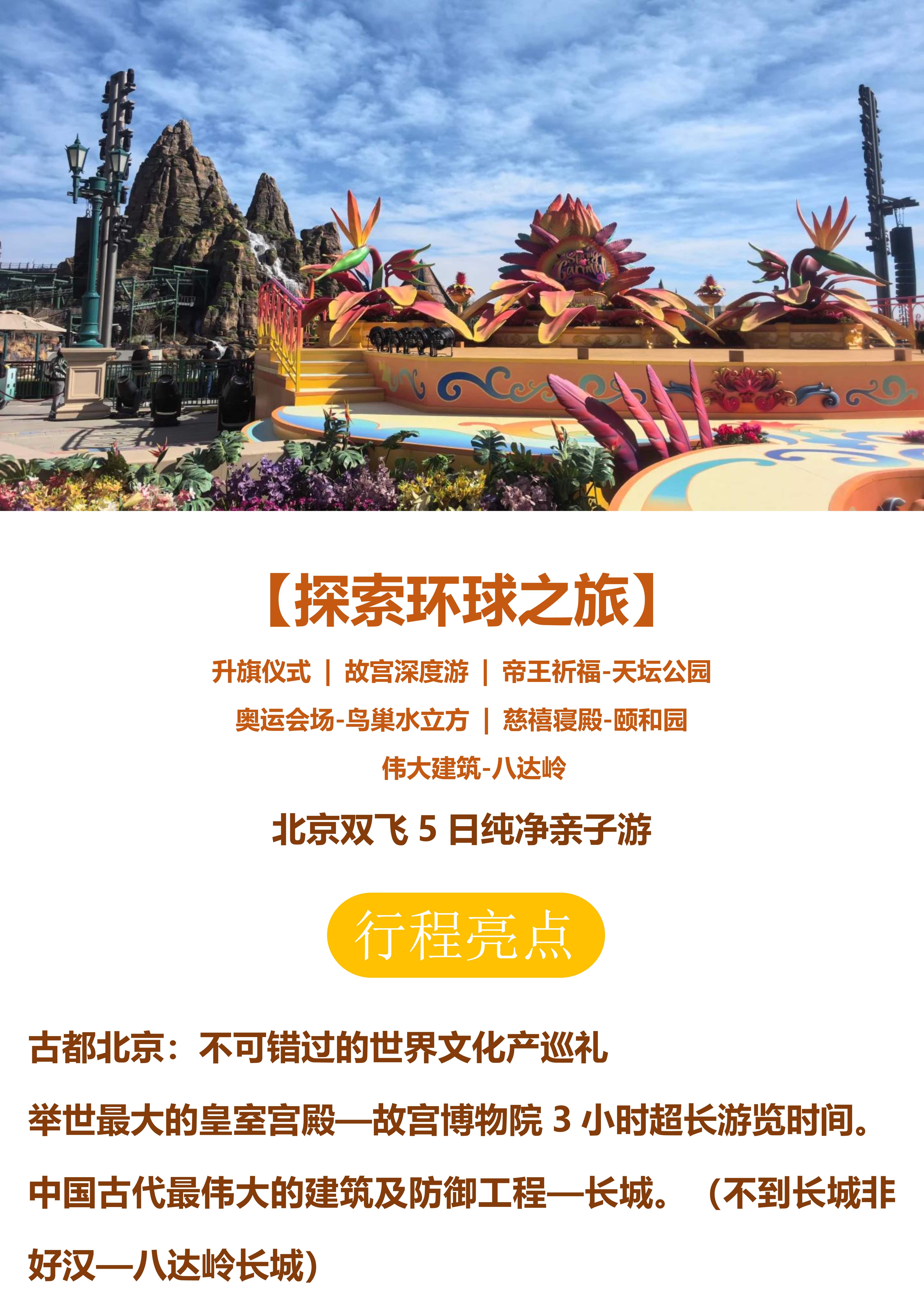 【探索环球之旅】北京双飞5日纯净亲子游