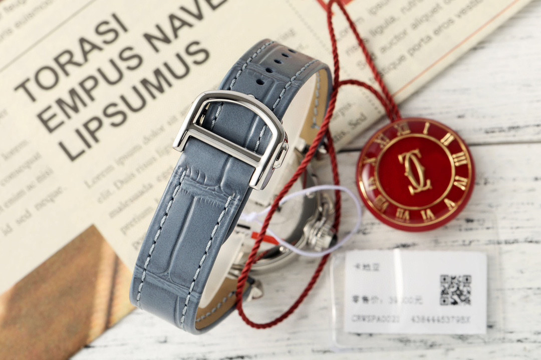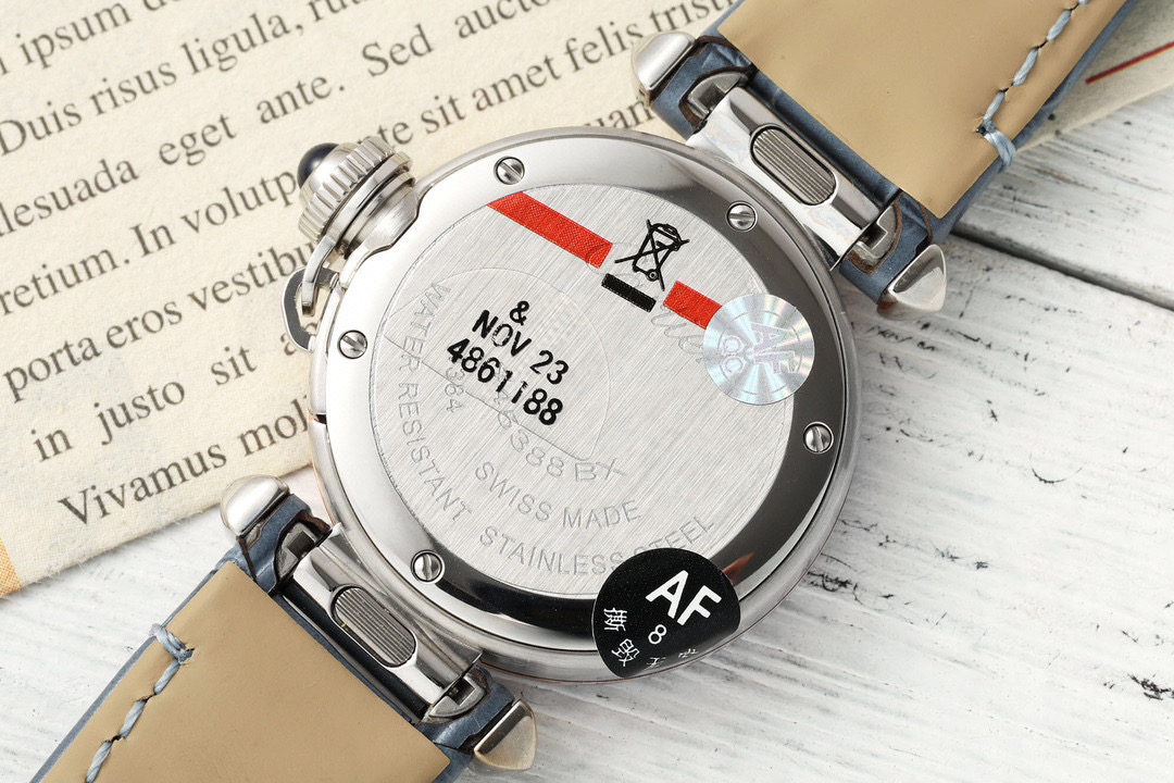 2. Pearl carved dial with diamond shaped blue steel hands! Cartier Cal.157 Swiss quartz movement with cover! Upon opening the lid, the appearance is identical to the original movement!