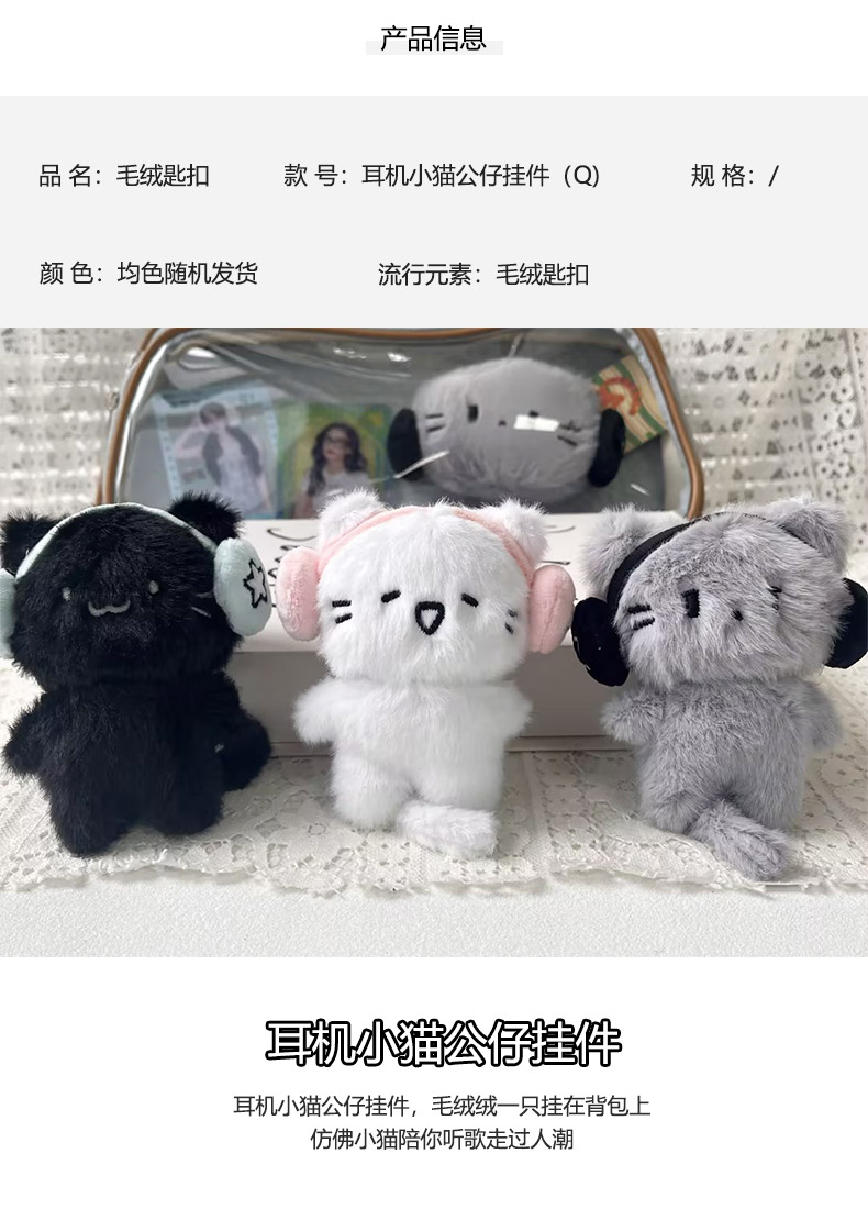 耳机小猫公仔挂件毛绒匙扣-纪念日百货门店同款169648929