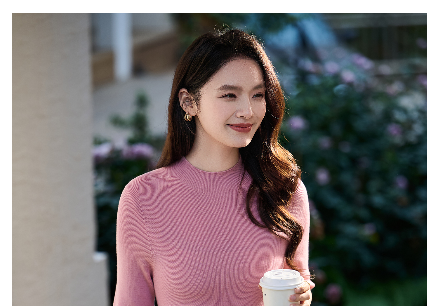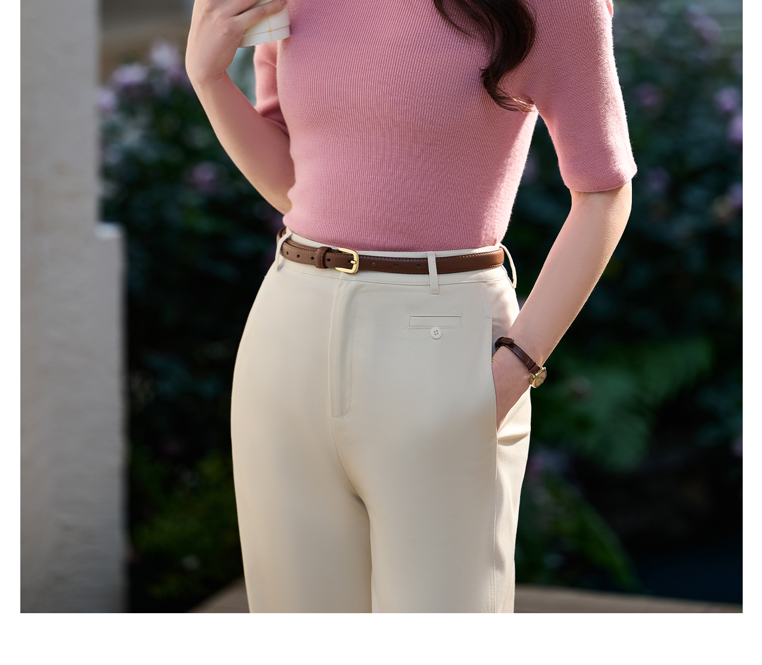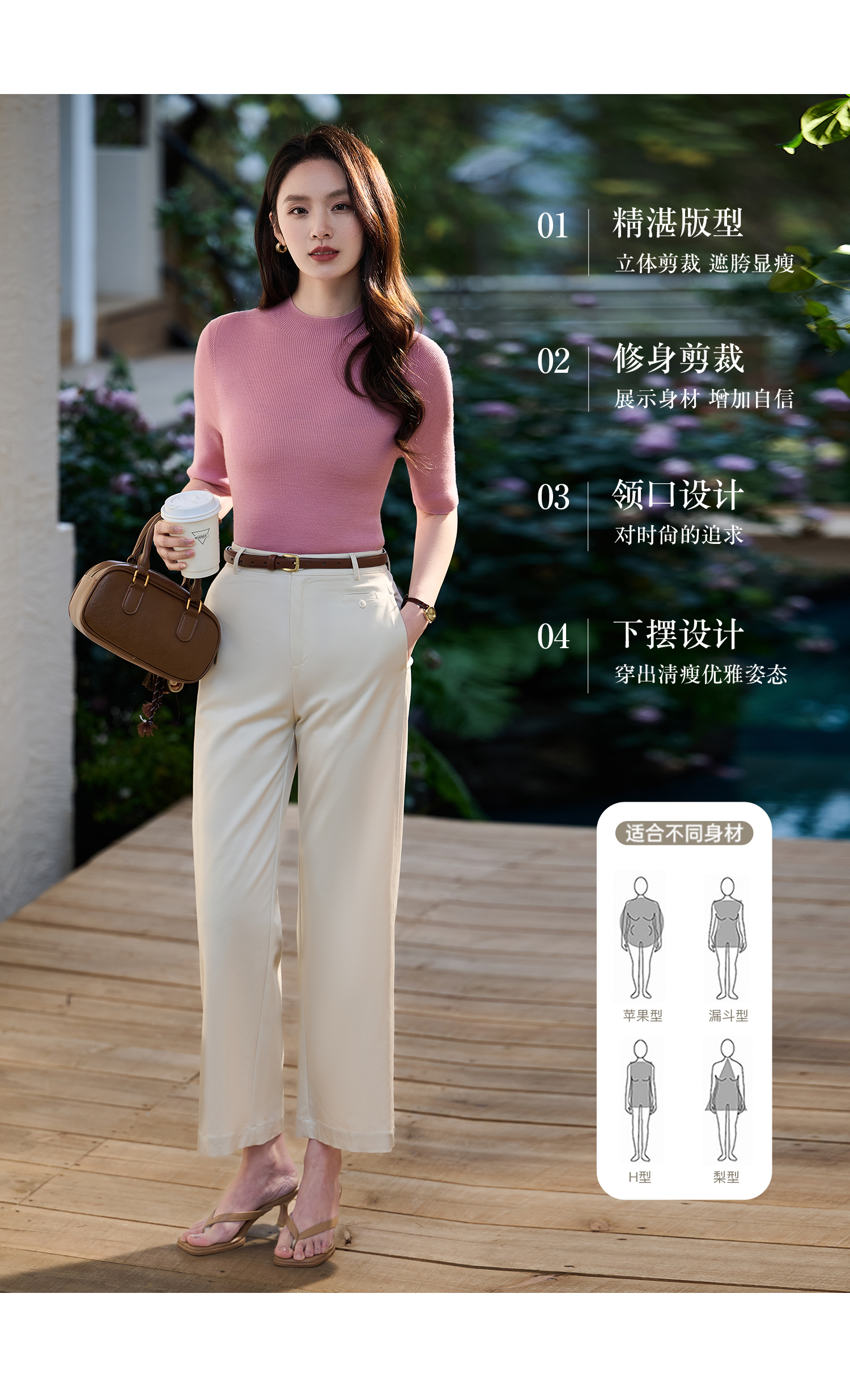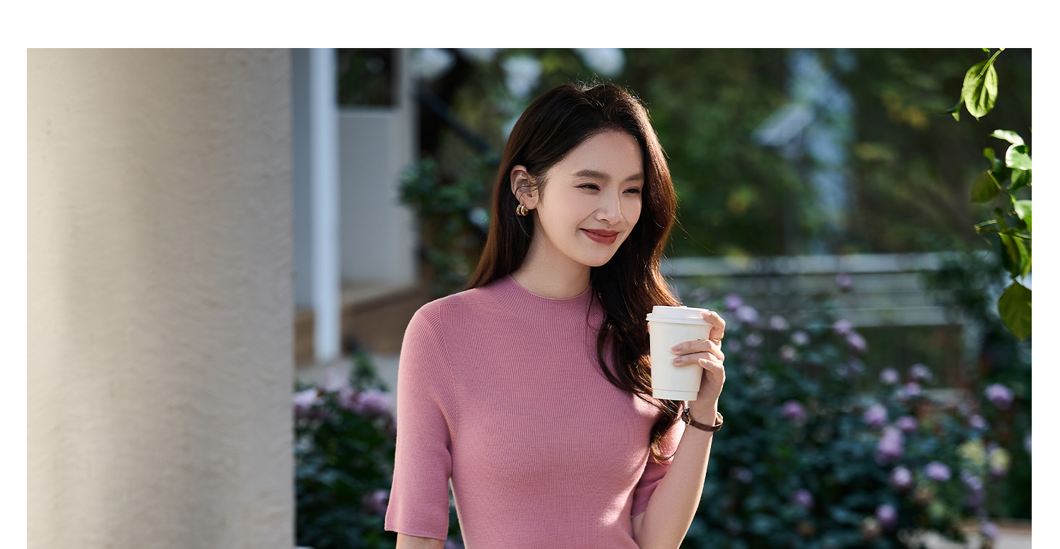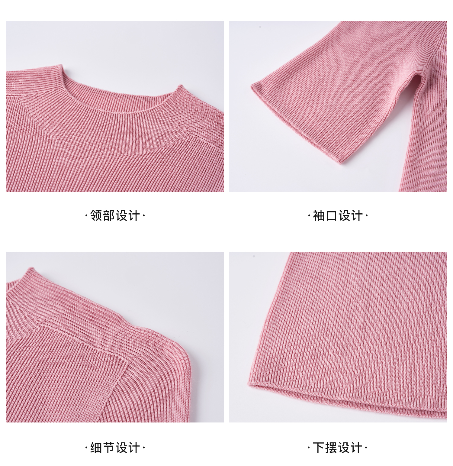 18针岛精扬子纱 100%羊毛 米思阳2026春季新款无缝一体五分袖短袖半高领针织打底衫女1064