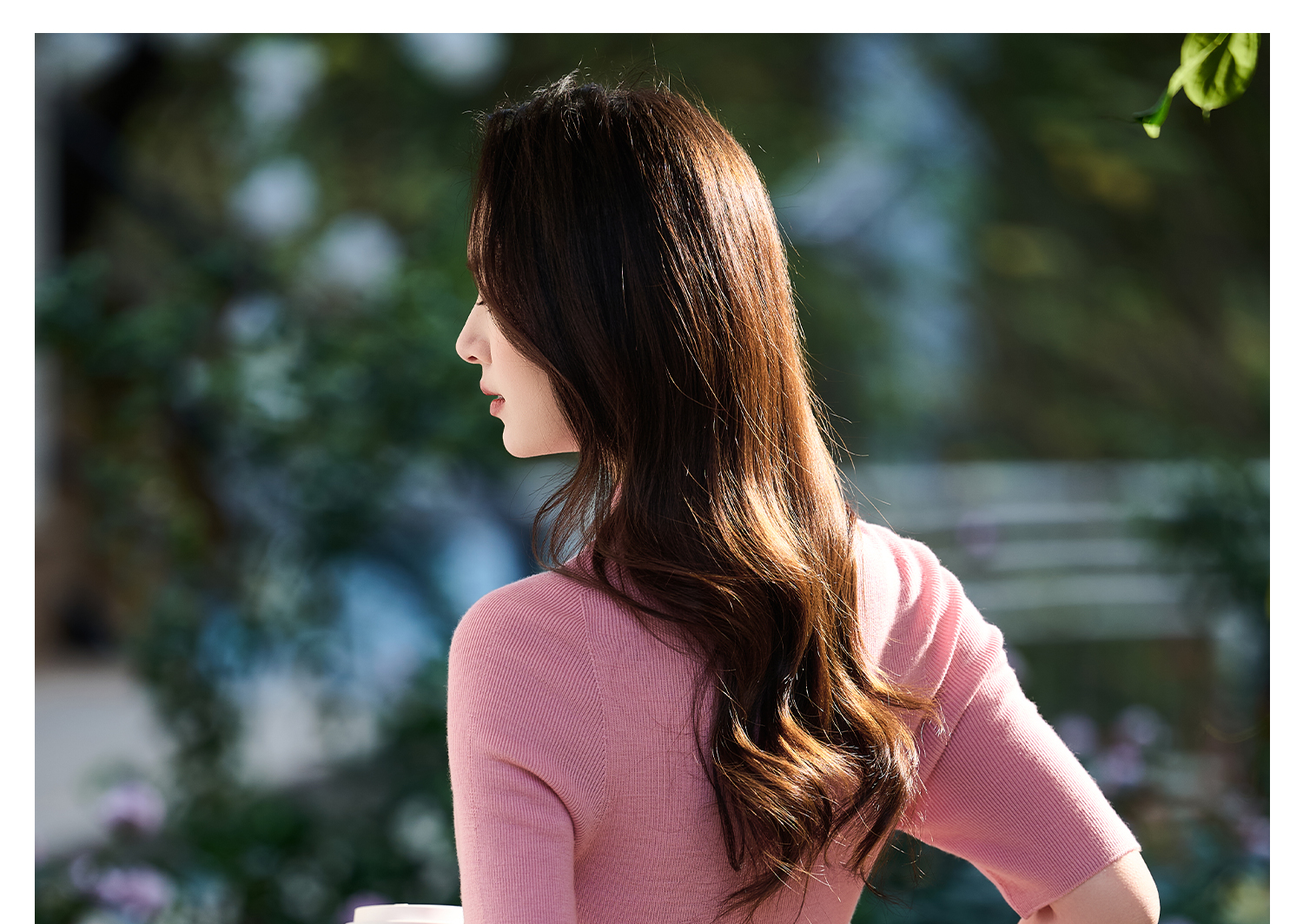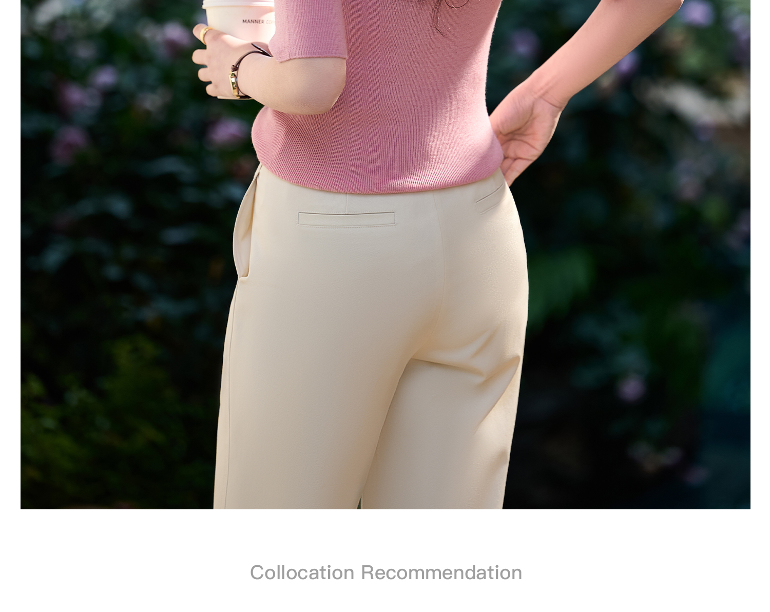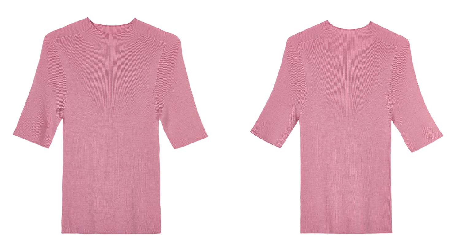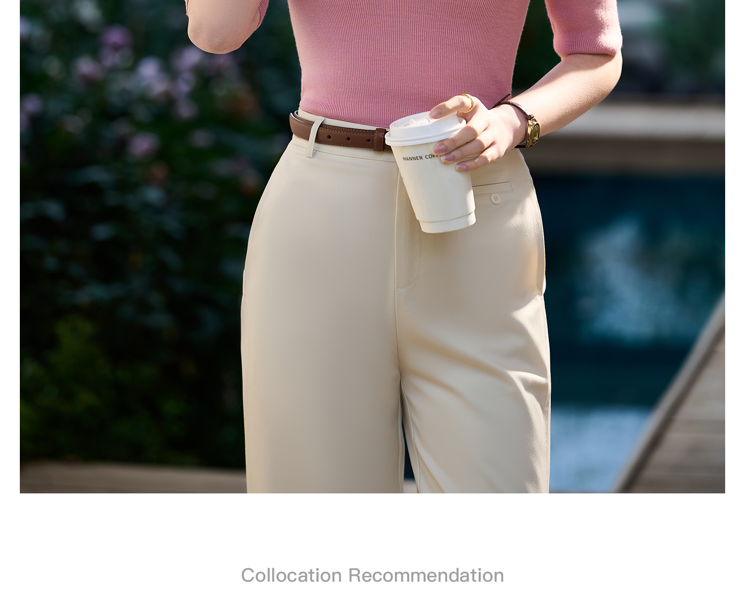 18针岛精扬子纱 100%羊毛 米思阳2026春季新款无缝一体五分袖短袖半高领针织打底衫女1064