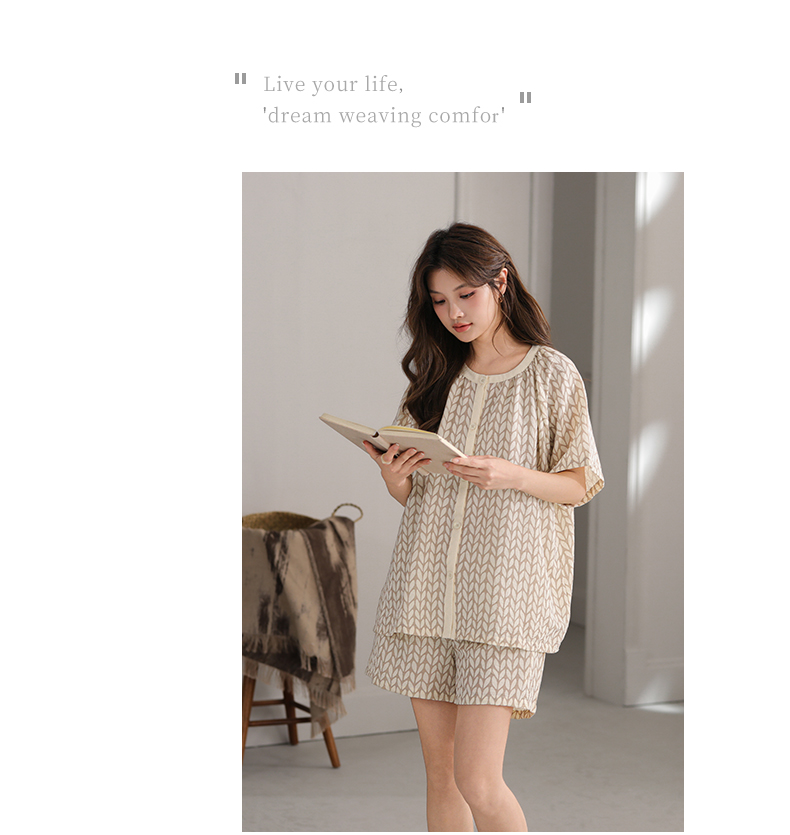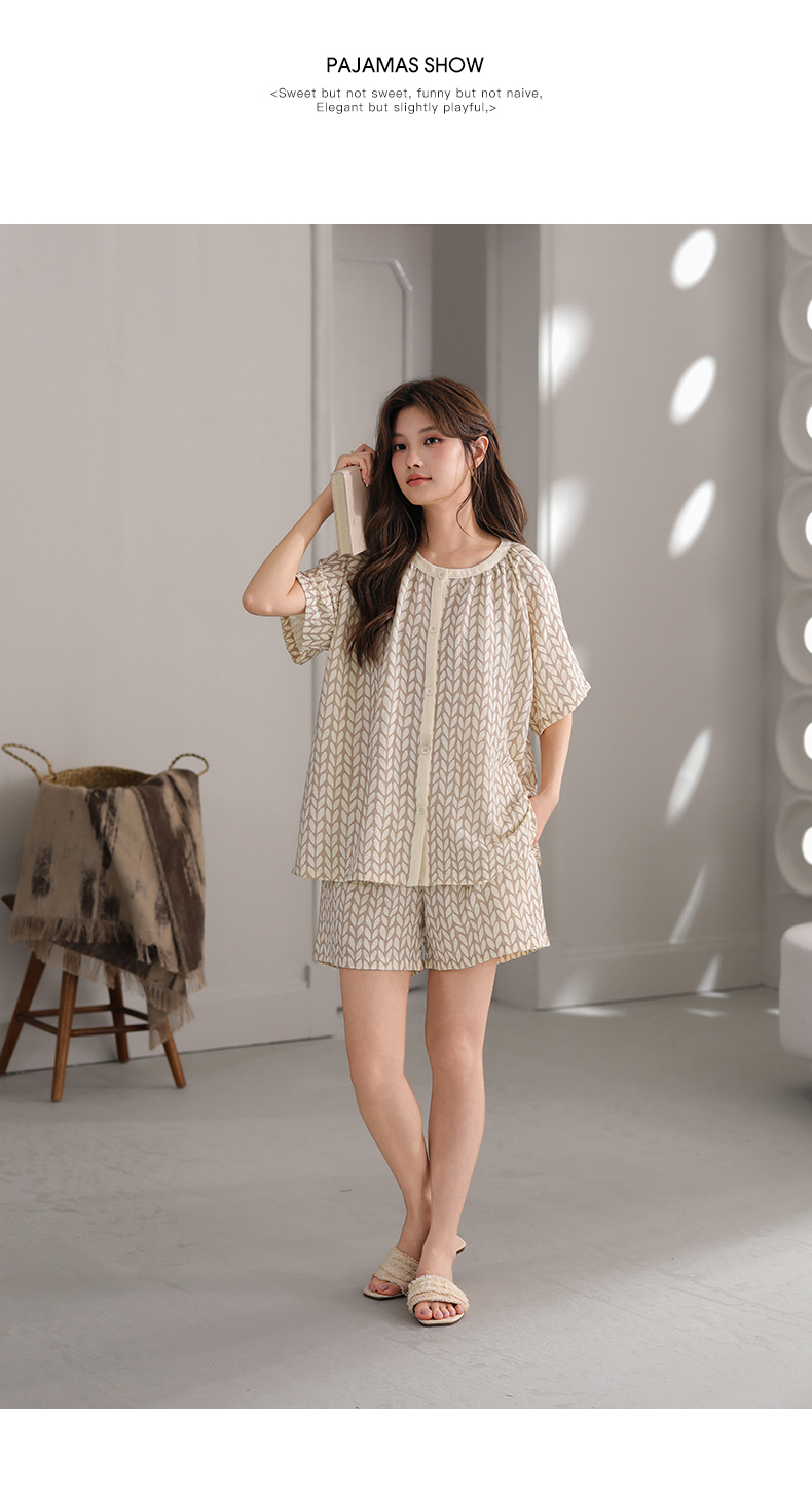 可人儿小众设计师新款泡泡绵夏季女士短袖睡衣时尚可外出家居服
